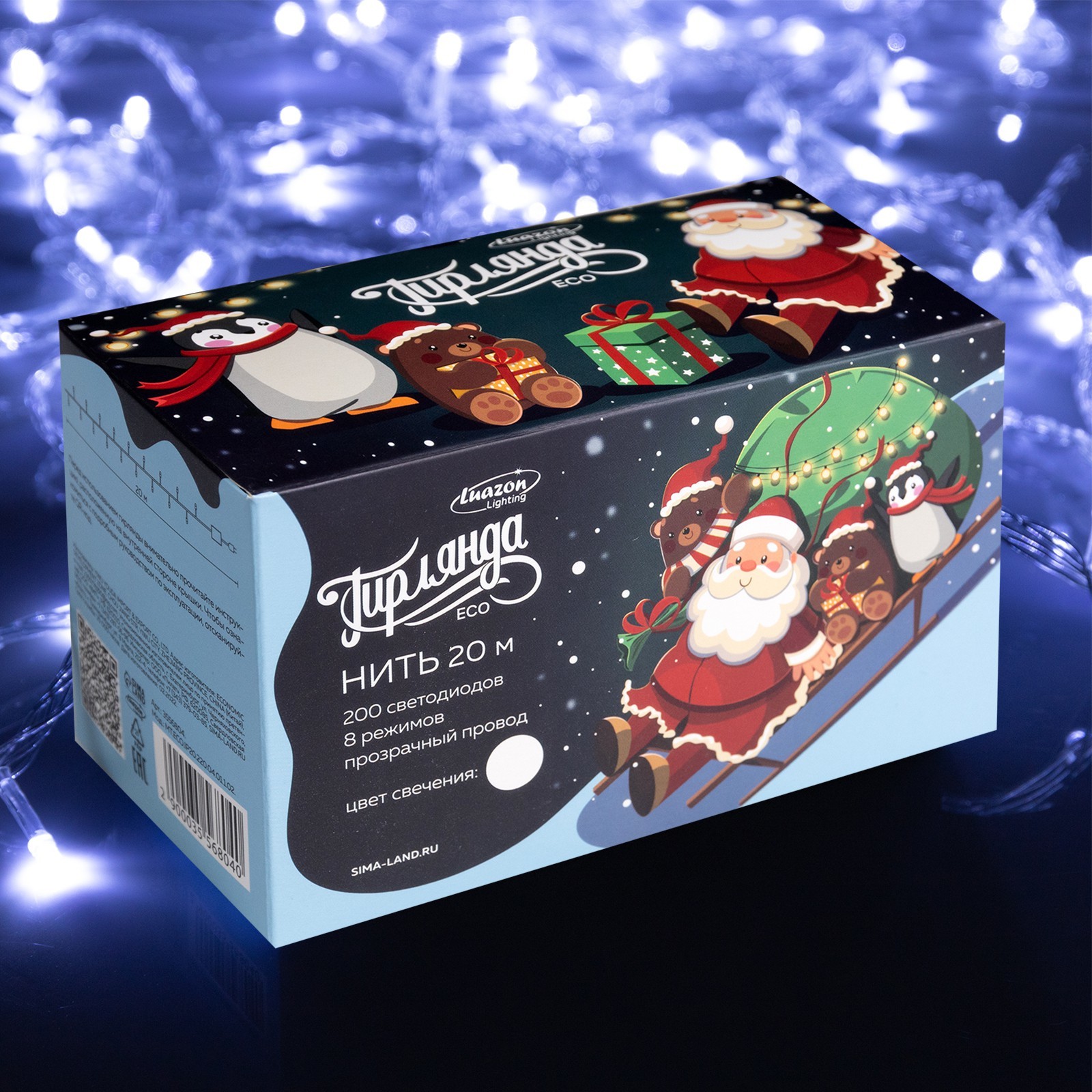Гирлянда «нить» 20 м, Ip20, прозрачная нить, 200 Led, 8 режимов, 220 в, свечение белое