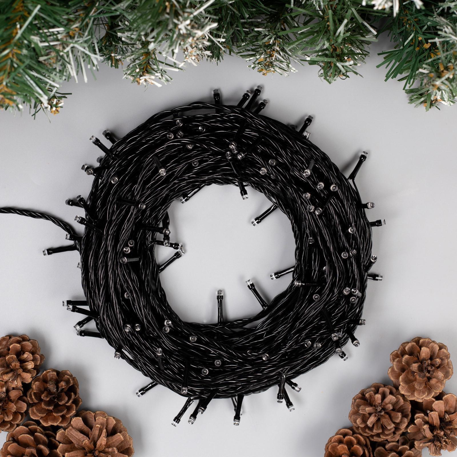Гирлянда «нить» 20 м, Ip20, тёмная нить, 200 Led, свечение синее, 8 режимов, 220 в
