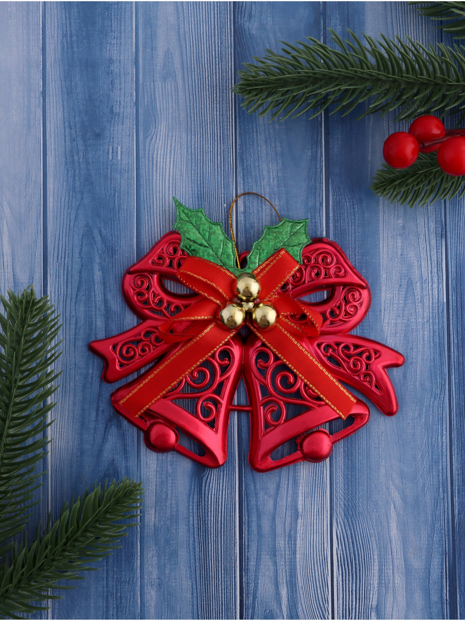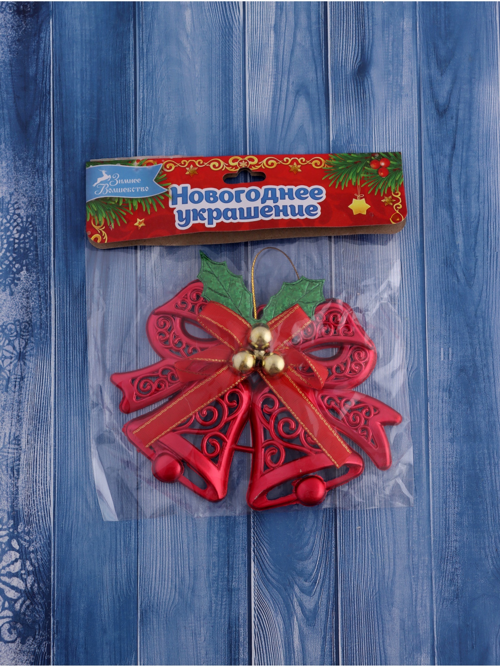 Ёлочная игрушка «зимнее волшебство. колокольчик двойной с шариками и лентой» пластик, 12,3х9,5 см, красный