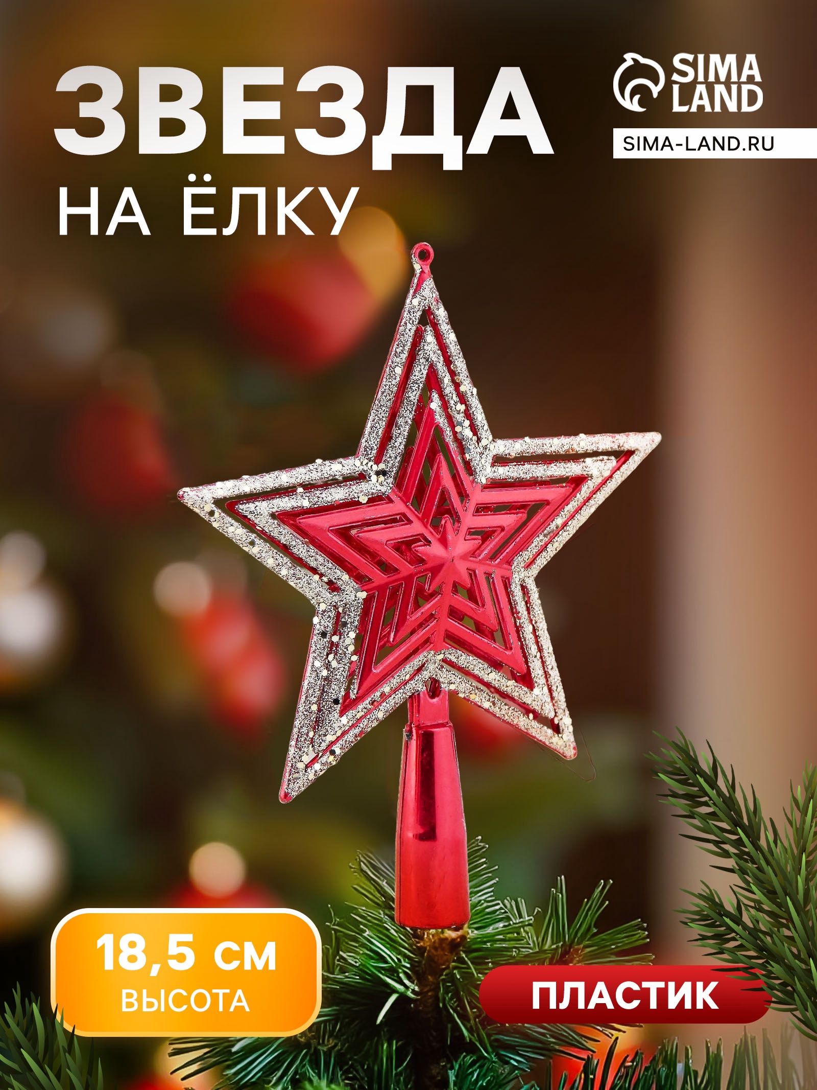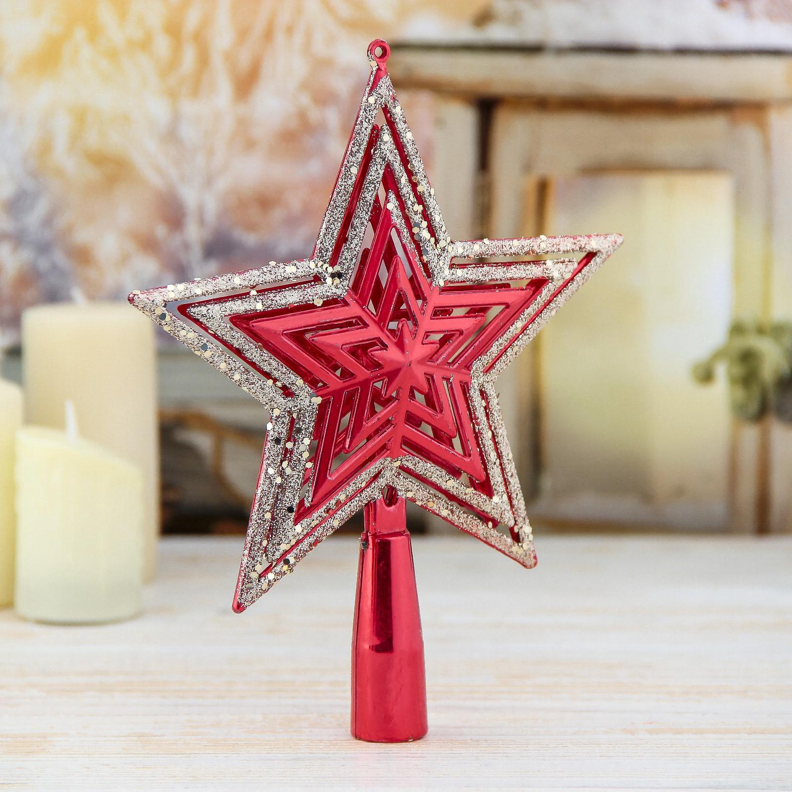 Звезда на ёлку (верхушка), блёстки, 15 18.5 см, красный