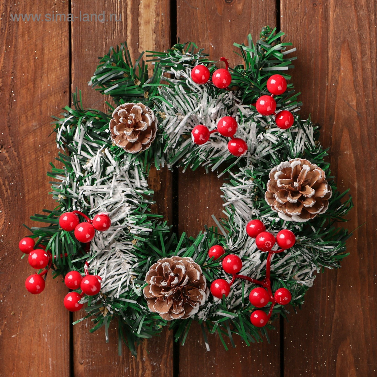 Венок новогодний d=22 см «зимнее волшебство. шишки с ягодками на зелёном». Приготовьтесь встретить праздник с особой атмосферой благодаря этому новогоднему украшению. Венок диаметром 20 см станет идеальным дополнением для вашей входной двери или стены, создавая атмосферу торжества. Особенности Шишки и ягоды добавляют венку роскоши и праздничного блеска.Комбинация зелёного и красного цветов создаёт классический новогодний ансамбль.Изготовлен из прочного пластика, который сохраняет форму и внешний вид на протяжении всего сезона.Идеально подходит для создания атмосферы Украшение впишется как в традиционные, так и в современные интерьеры, благодаря универсальному дизайну. Оно не просто украсит ваш дом, но и станет символом приближающегося праздника, радуя вас и ваших гостей каждый день. Добавьте в свой интерьер частичку зимней магии — и пусть каждый уголок вашего дома наполнится светом и теплом! Цвет:Красный|Диаметр, см:22|Символ года:Нет|Тематика праздника:Новый год|Материал:Пластик|Стиль:Новогоднее барокко|Стиль:Скандинавский|Страна:Китай  развернуть описание ▼