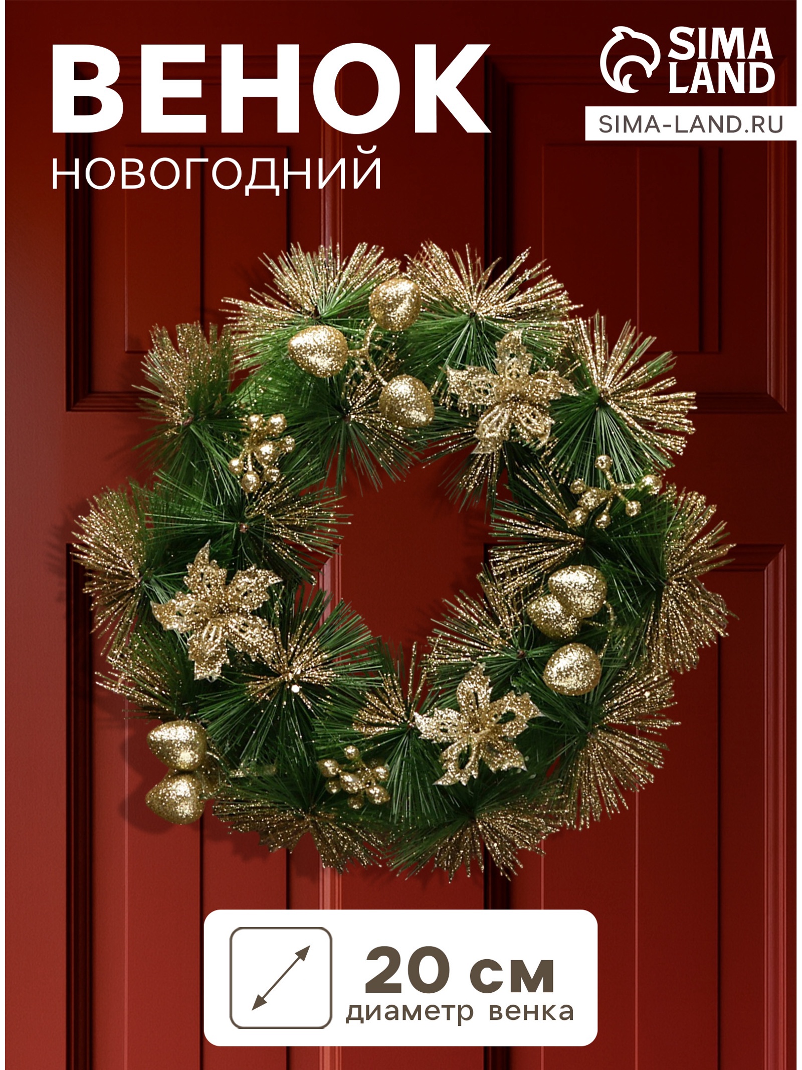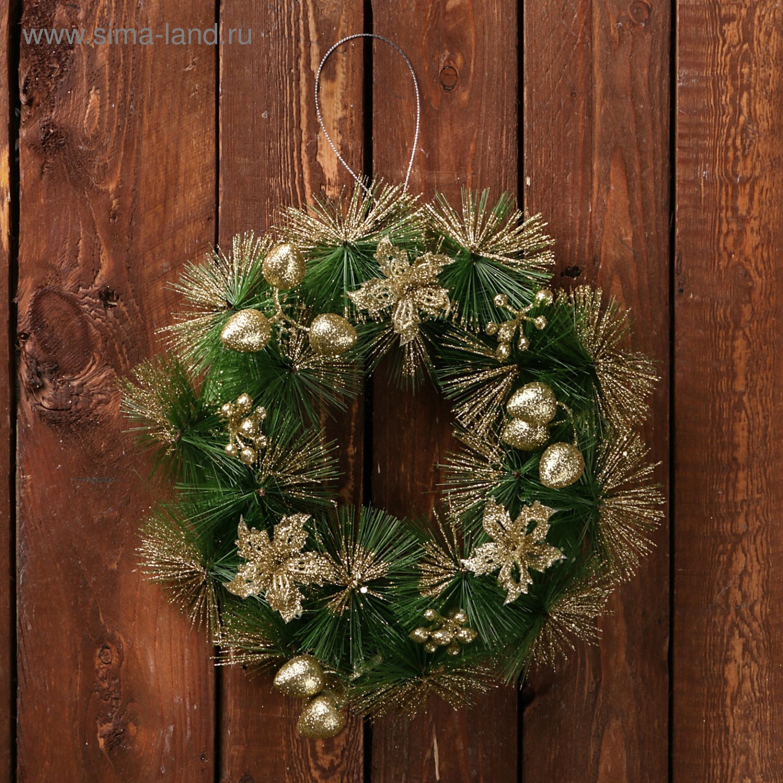 Венок новогодний D=20 см «зимнее волшебство. золотые цветы на зелёном»