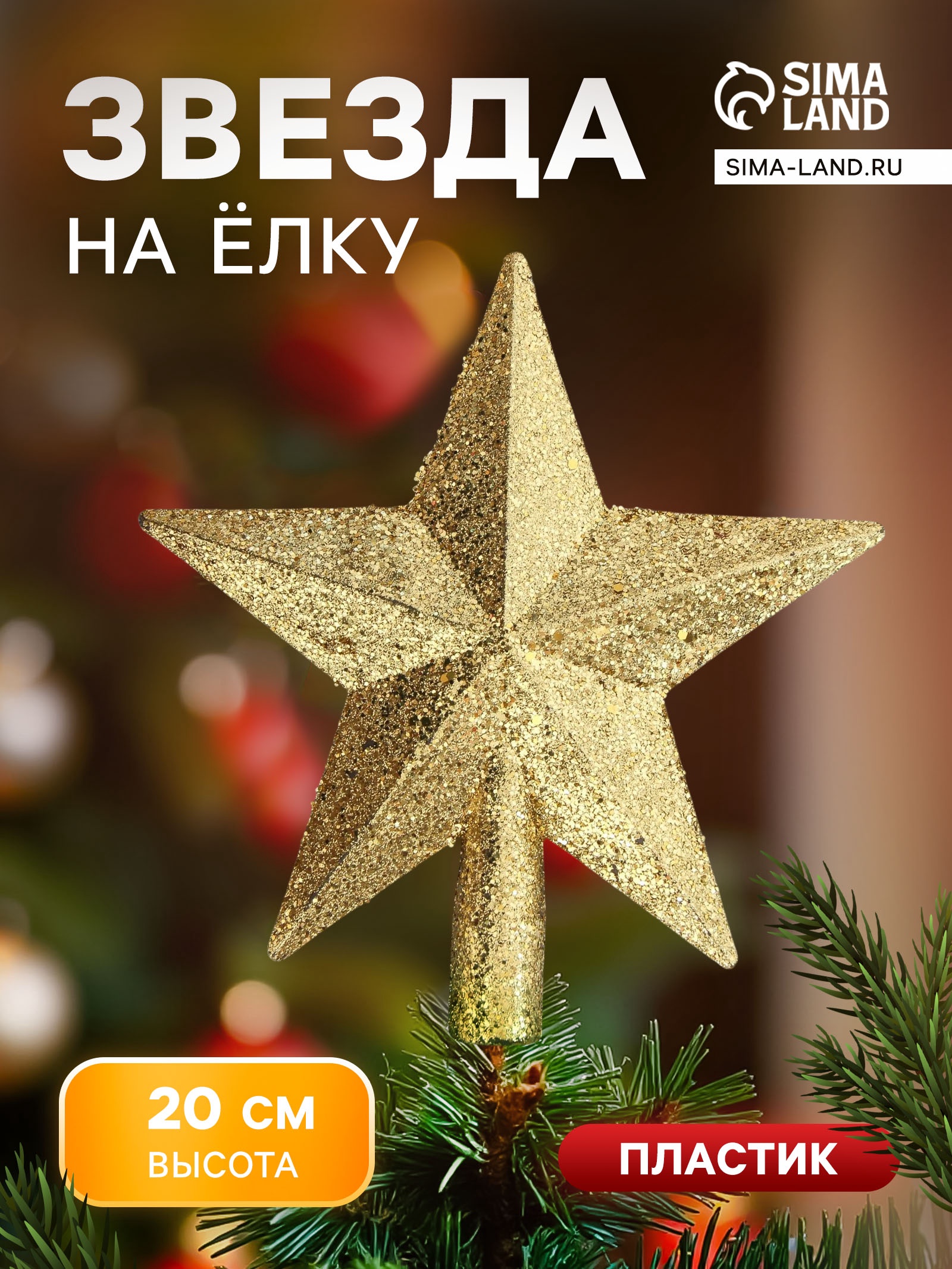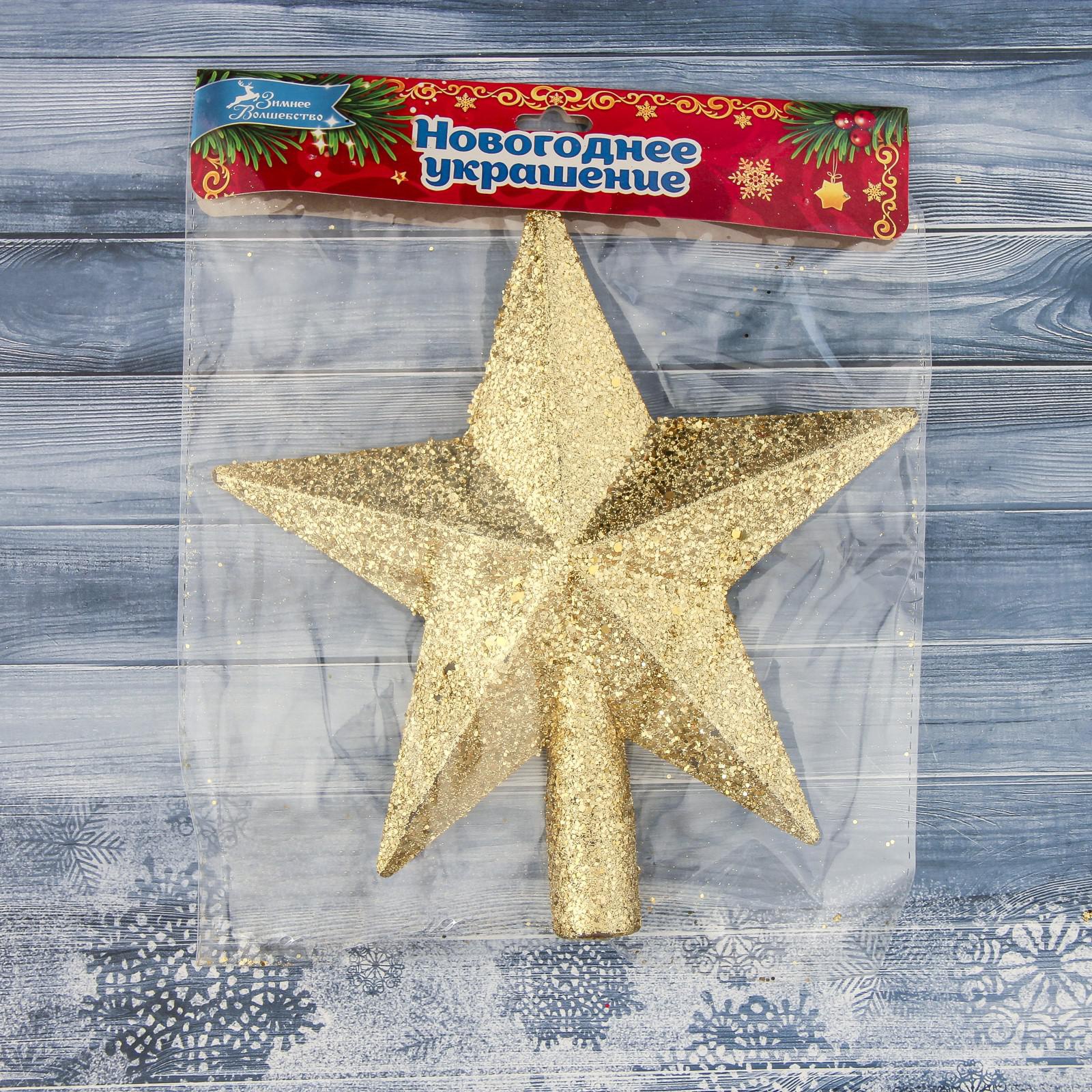 Звезда на ёлку (верхушка) блеск, 18.5 20 см, золотистый