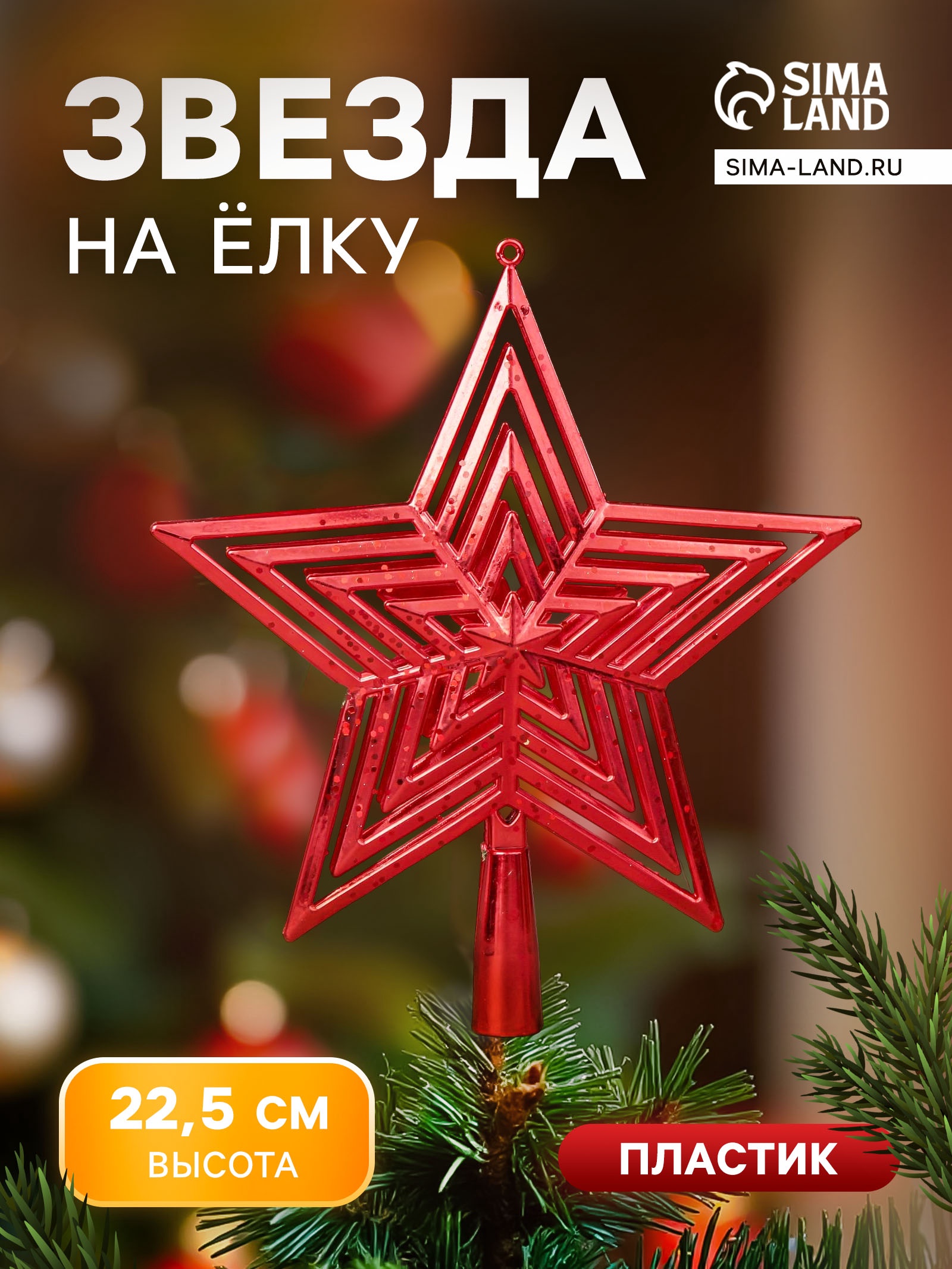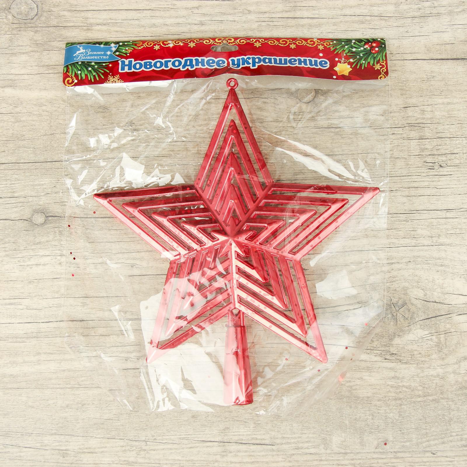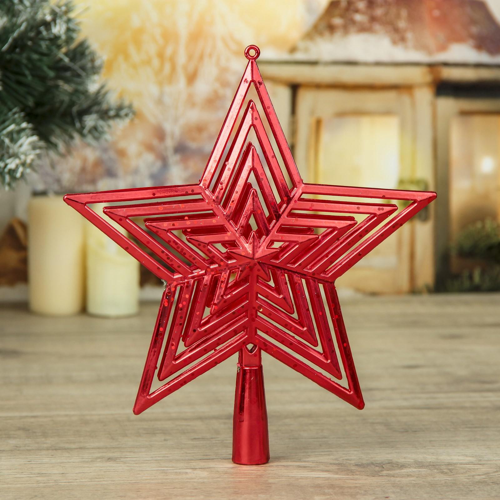 Звезда на ёлку (верхушка) грани, 20.5 22.5 см, красный