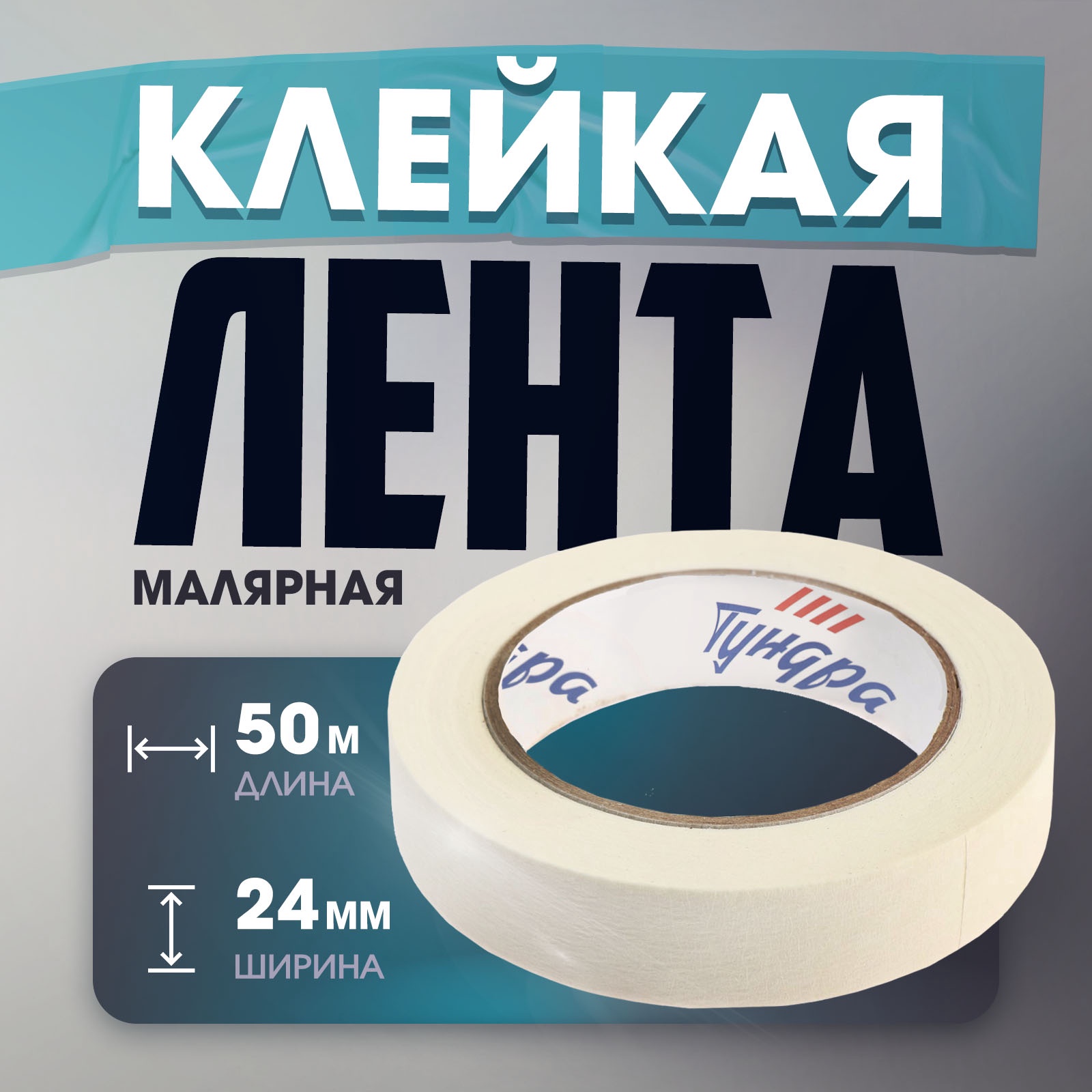 Лента малярная тундра, самоклеящаяся, бумажная основа, 120 мкм, 24 мм 50 м