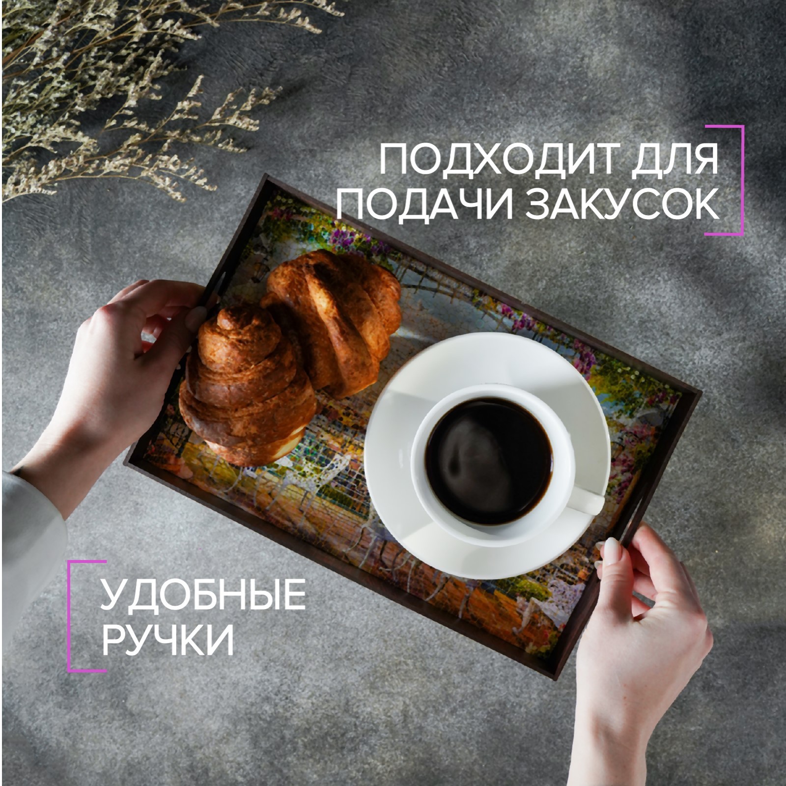 Поднос с ручками "франция", деревянный, 30х20х4,5см