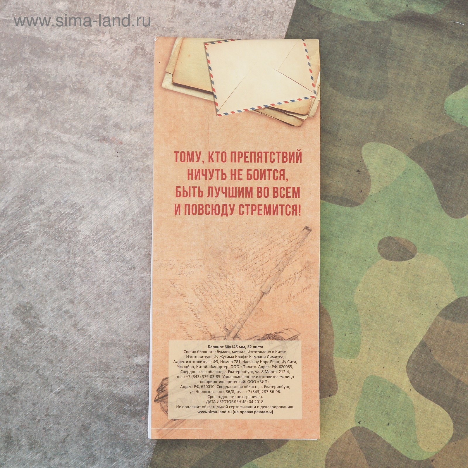 Набор подарочный «заметки солдата»: блокнот 16 листов и ручка пластик