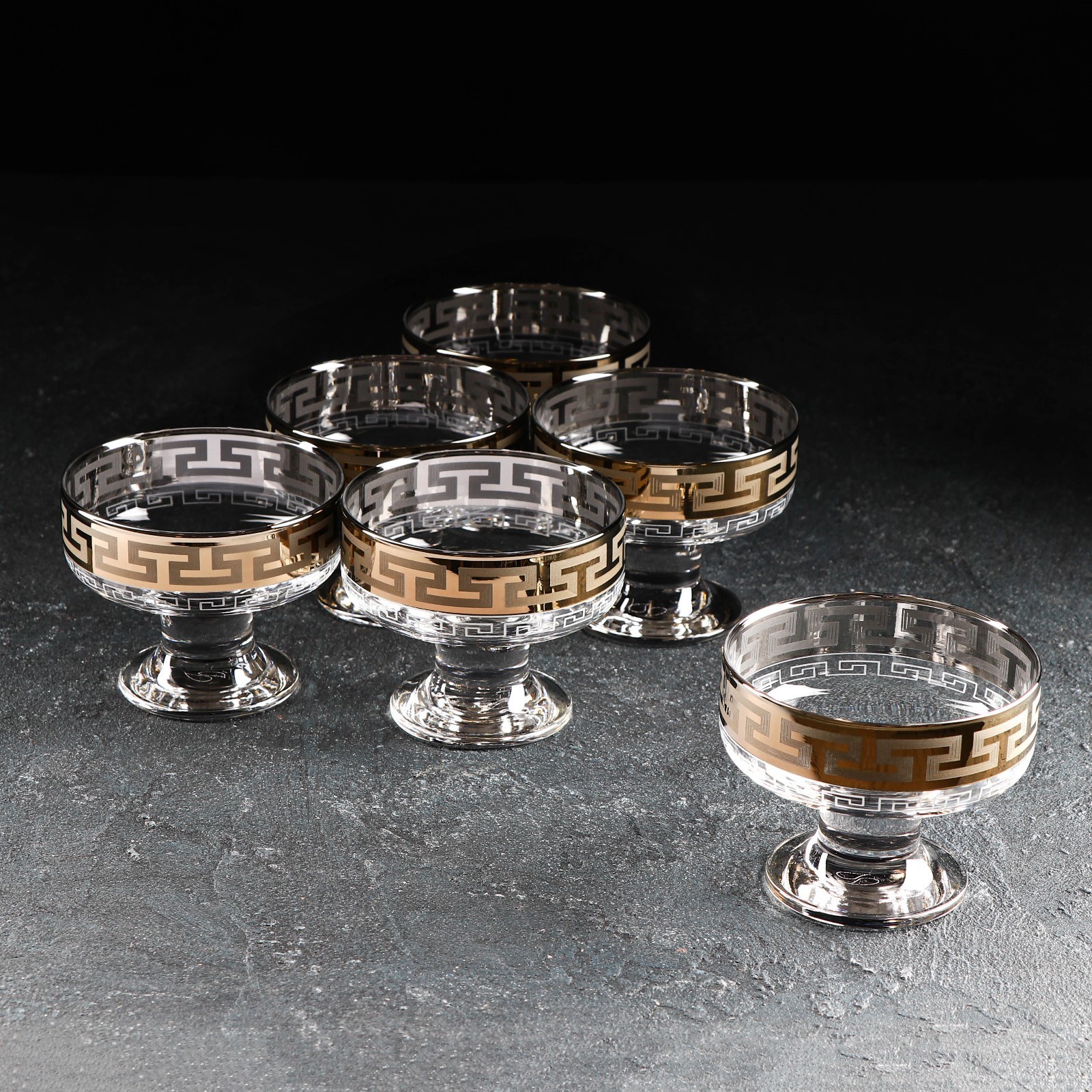 Набор креманок «греческий узор», 200 мл, D=10 см, 6 шт, цвет напыления золотой