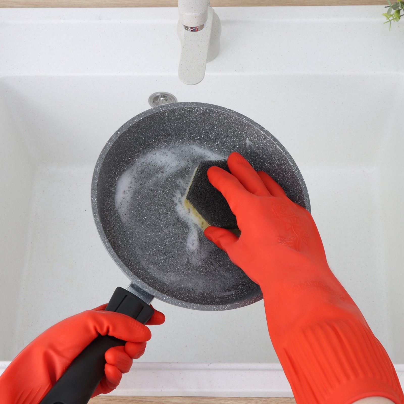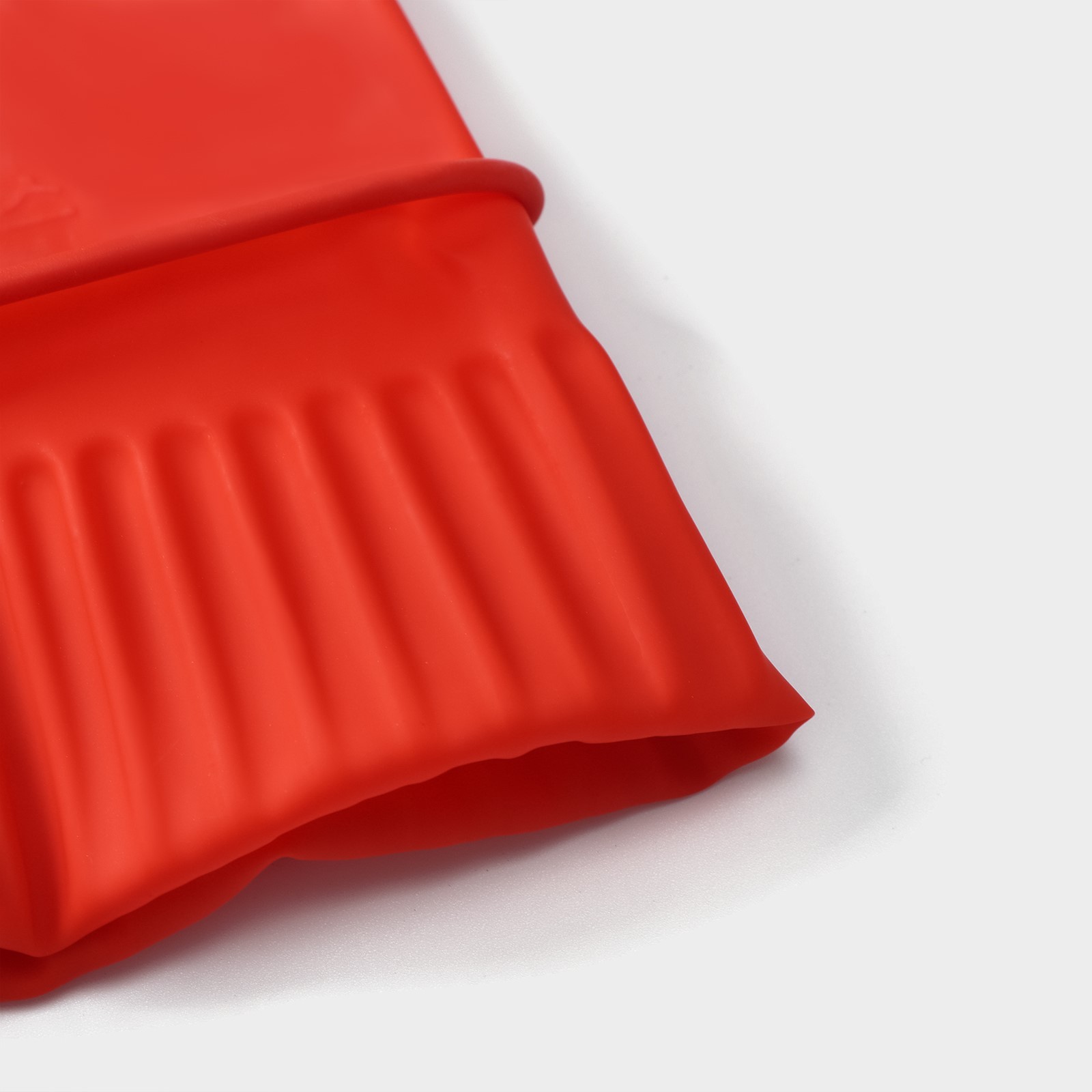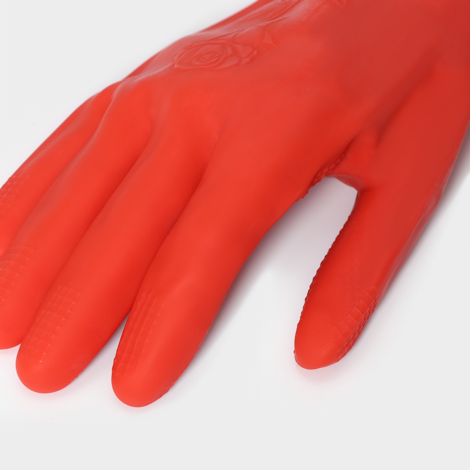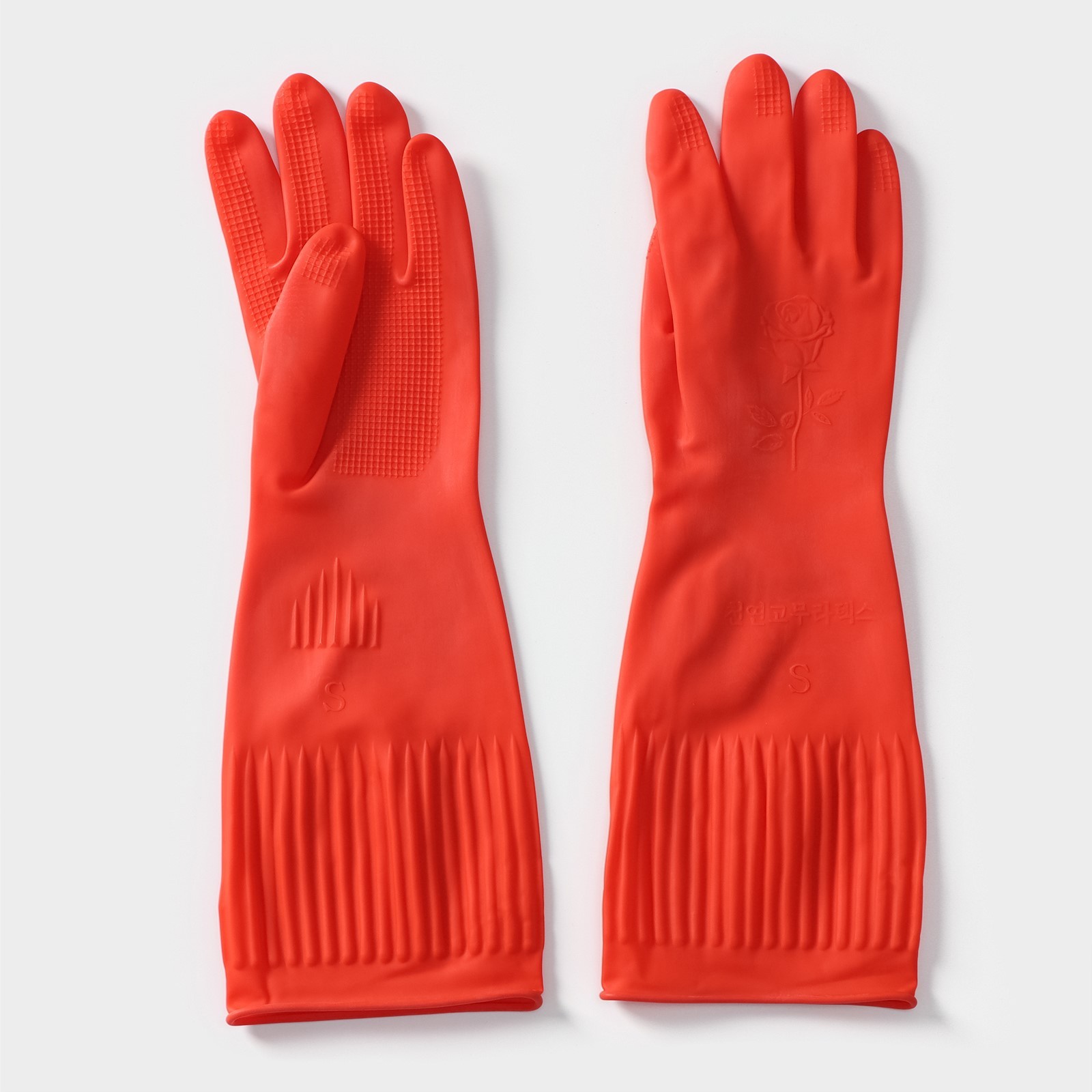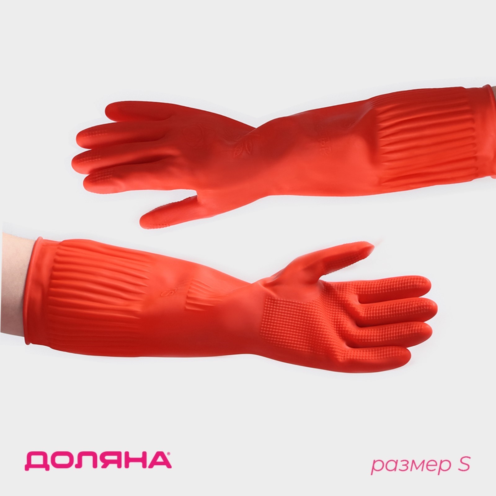 Перчатки хозяйственные латексные доляна, размер S, длинные манжеты, цвет красный