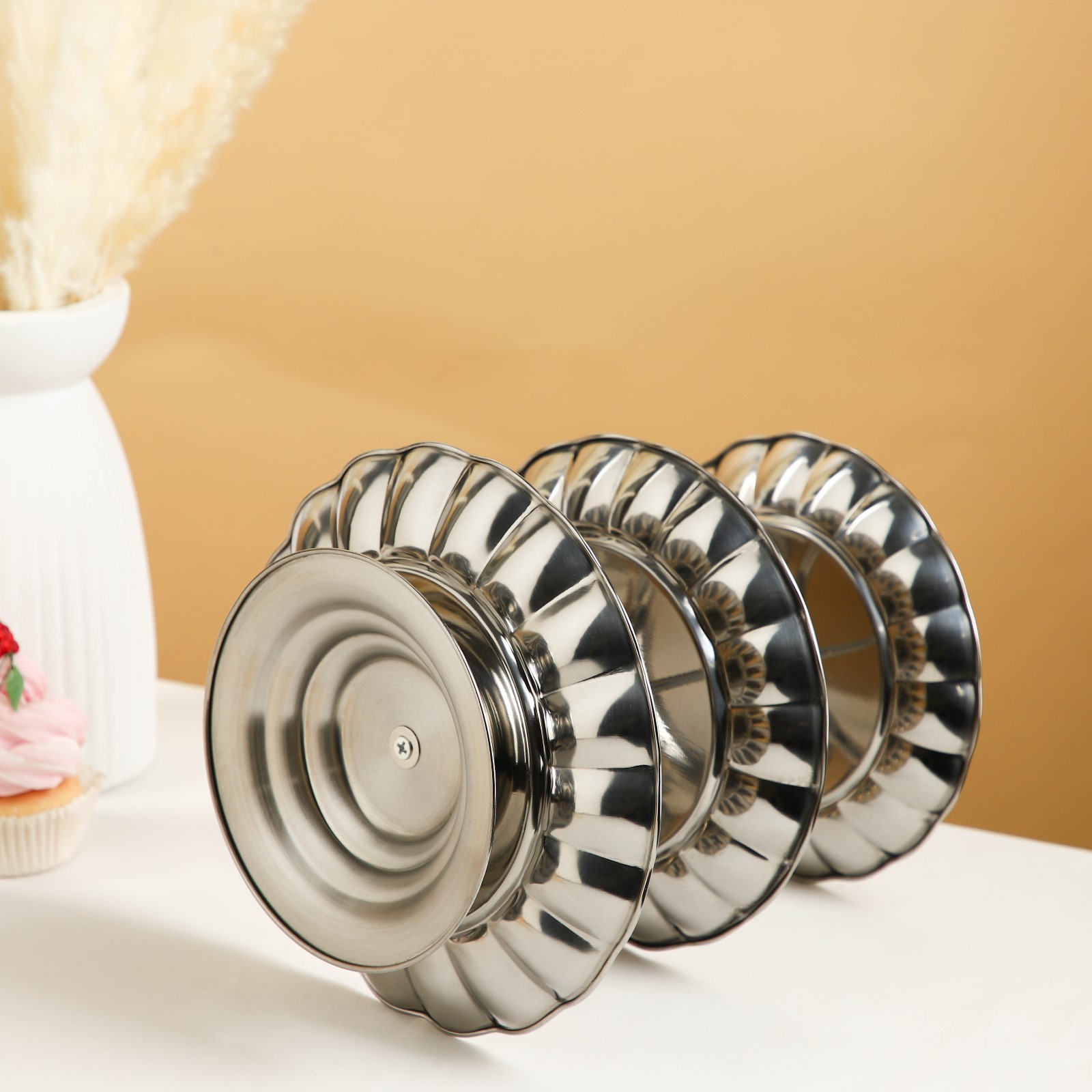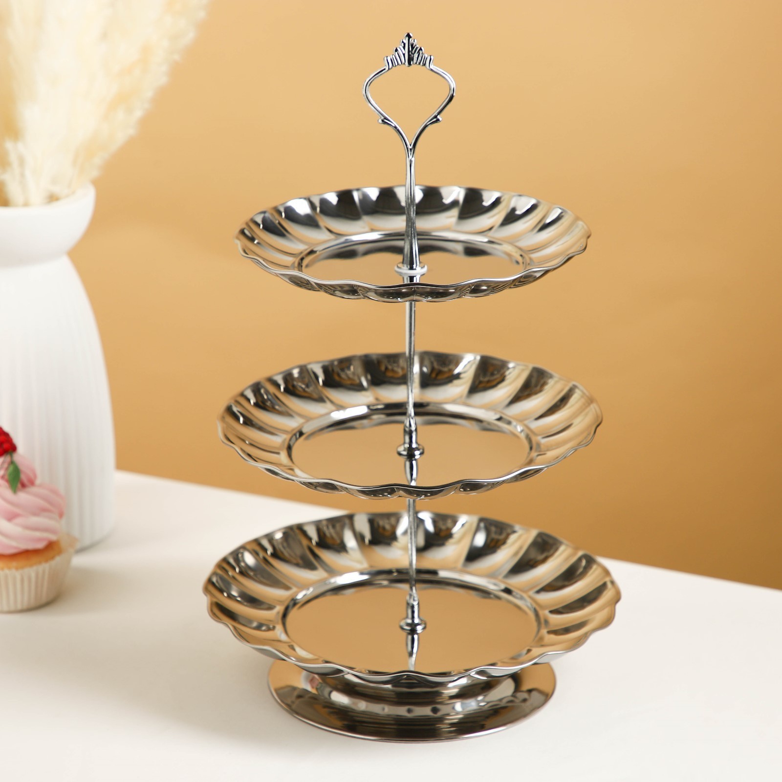 Блюдо 3-х ярусное, D=18/20/22 см, цвет серебряный