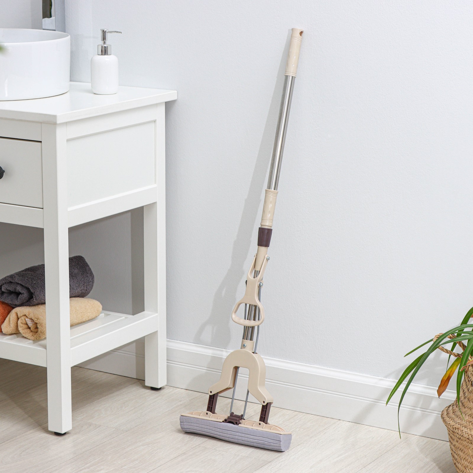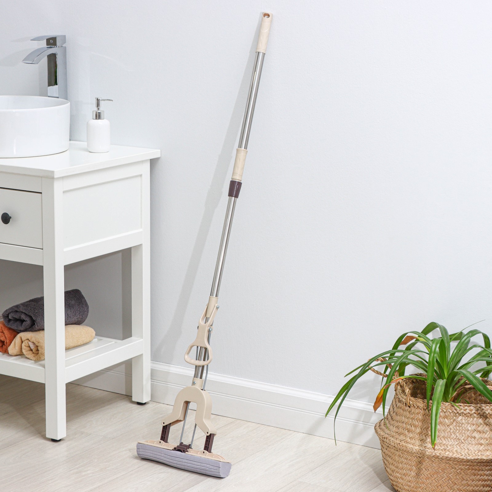 Швабра для мытья пола Pva со складным отжимом доляна, стальной составной черенок 27x6x100(125) см