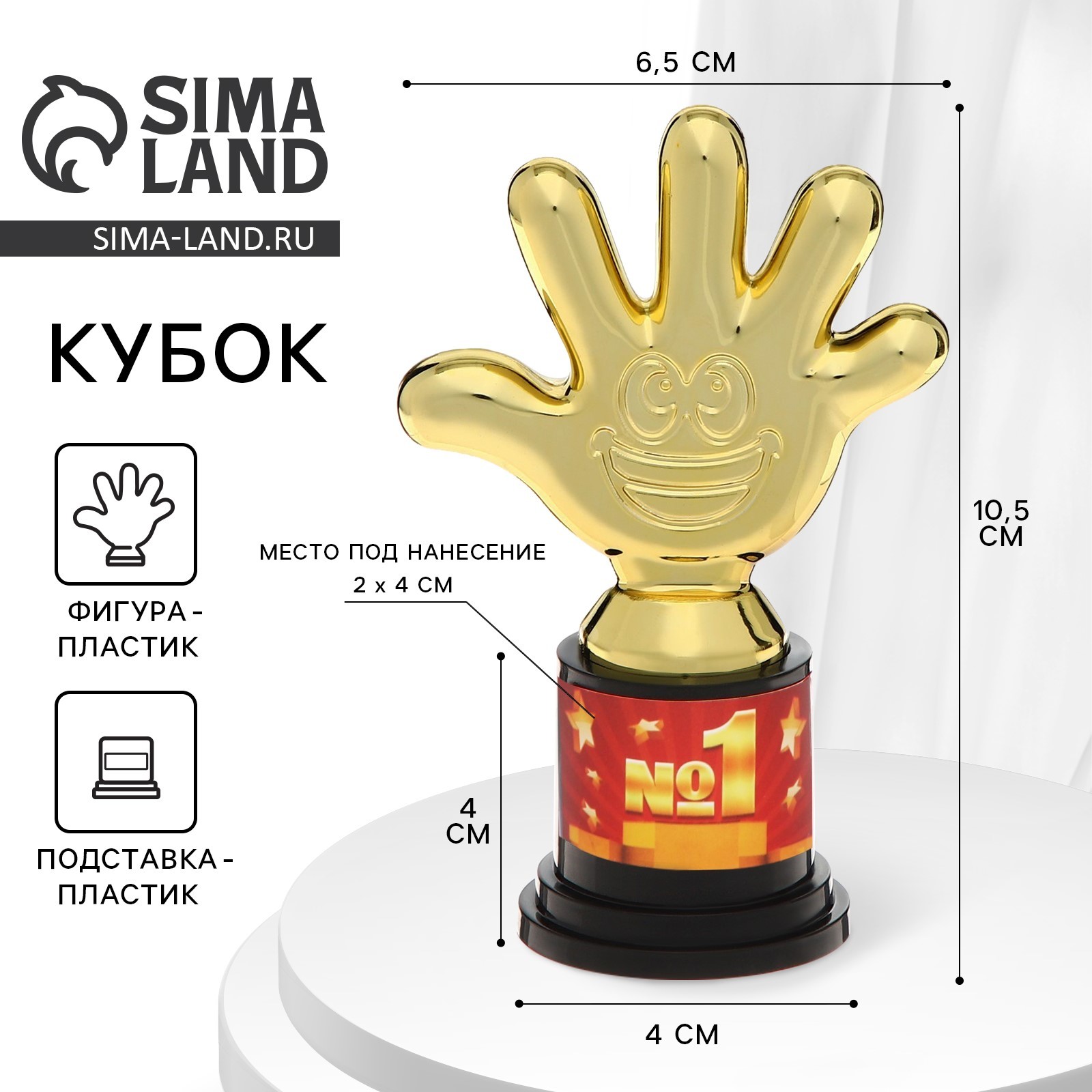 Кубок, наградная фигура «1 место», пятёрня, пластик, золото, 10.5 см