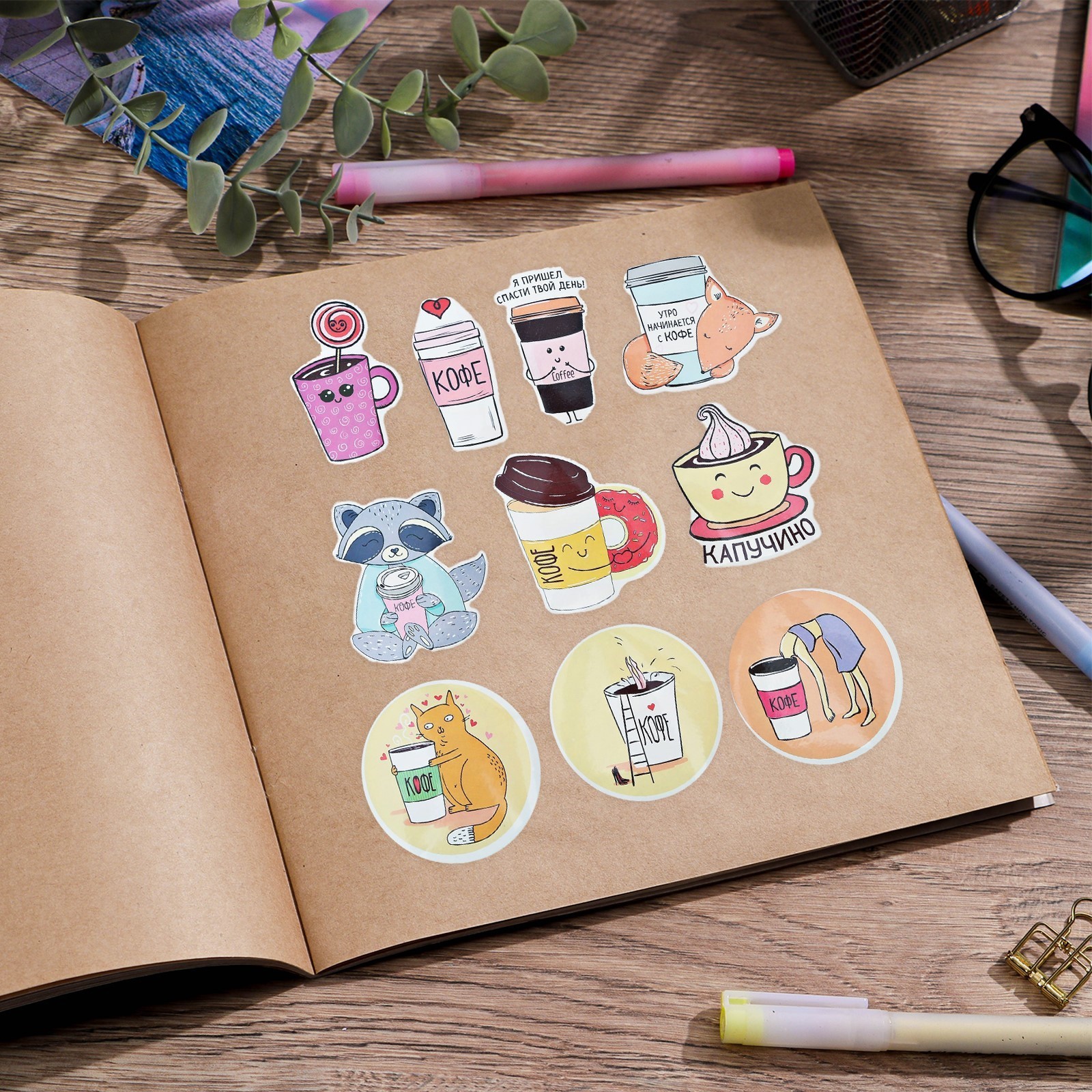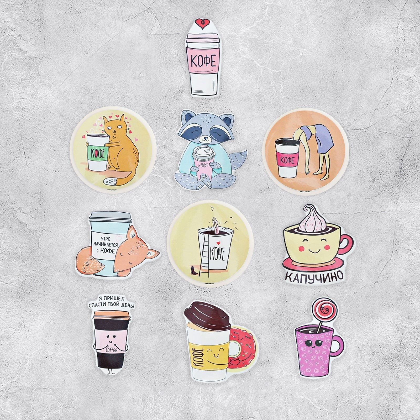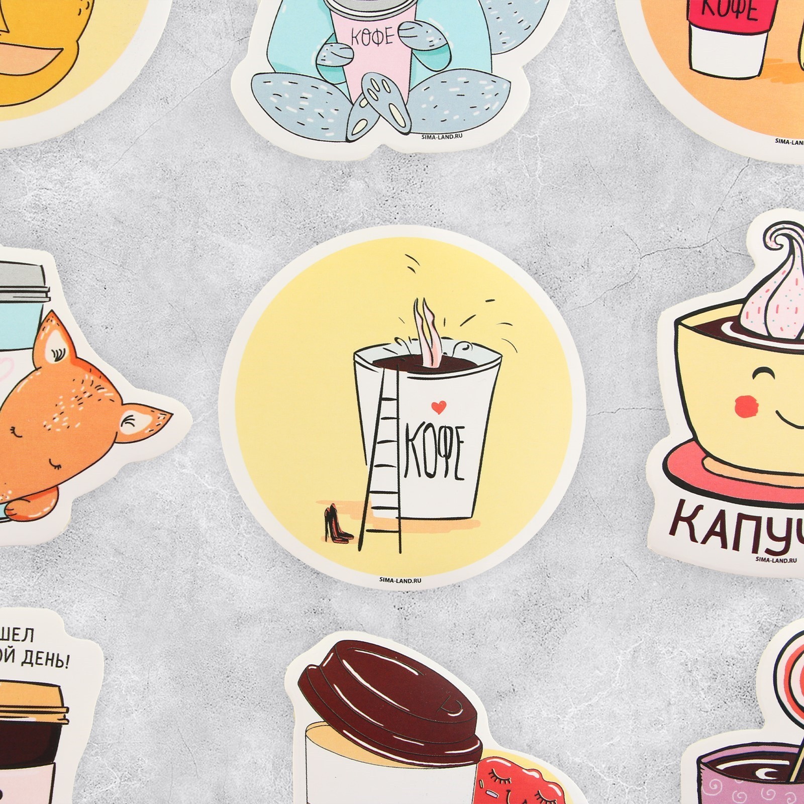 Наклейки стикеры «я люблю кофе», 7 X 7 см
