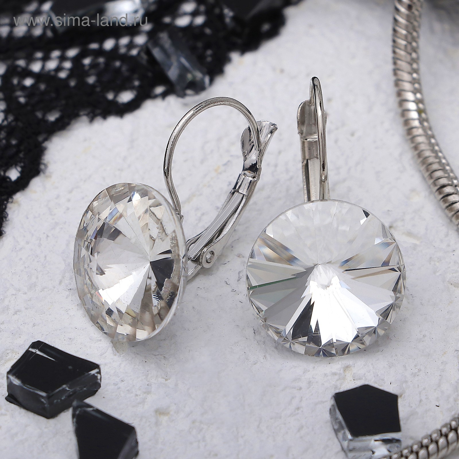 Серьги со стразами «яркая классика», белые в серебре, D=1.6 см