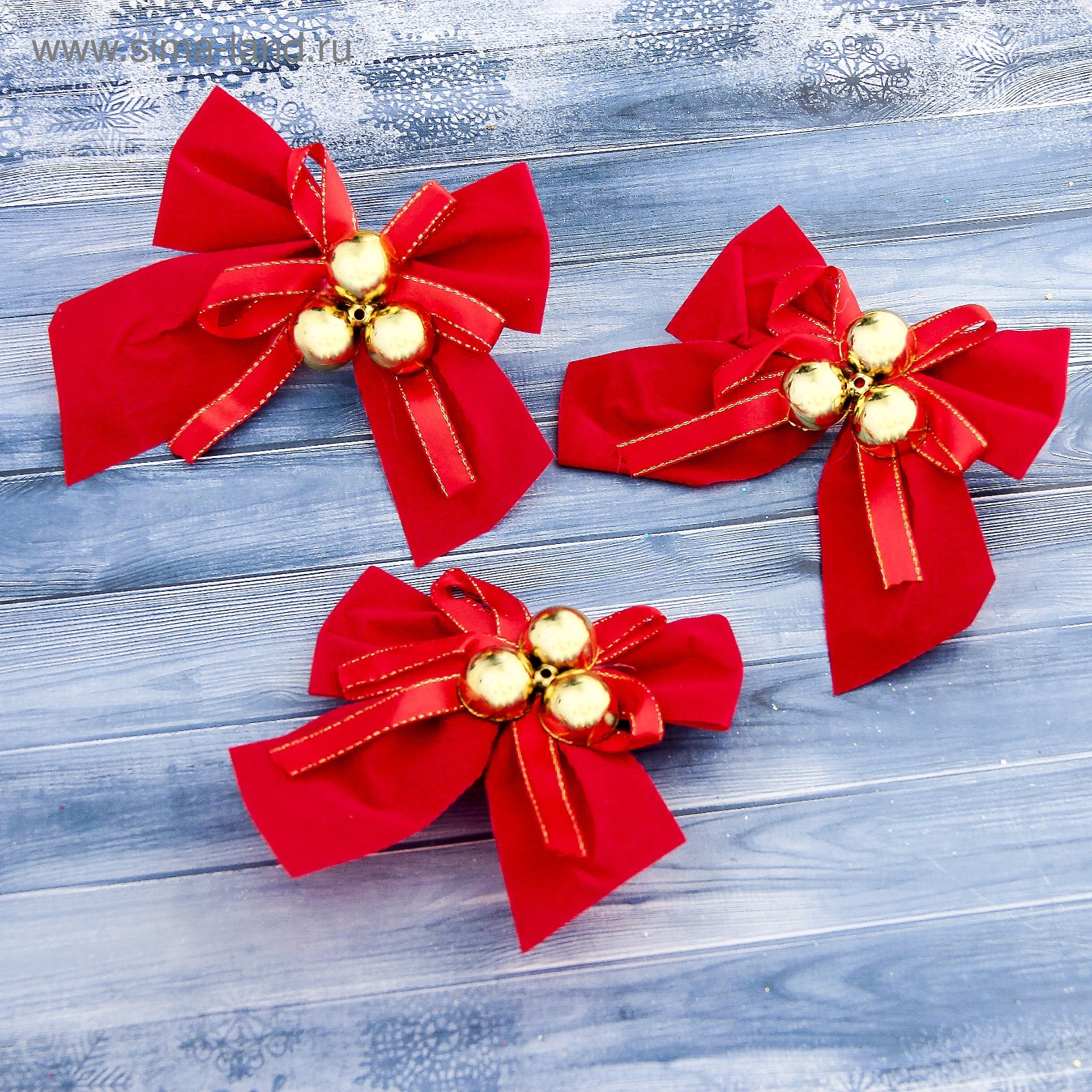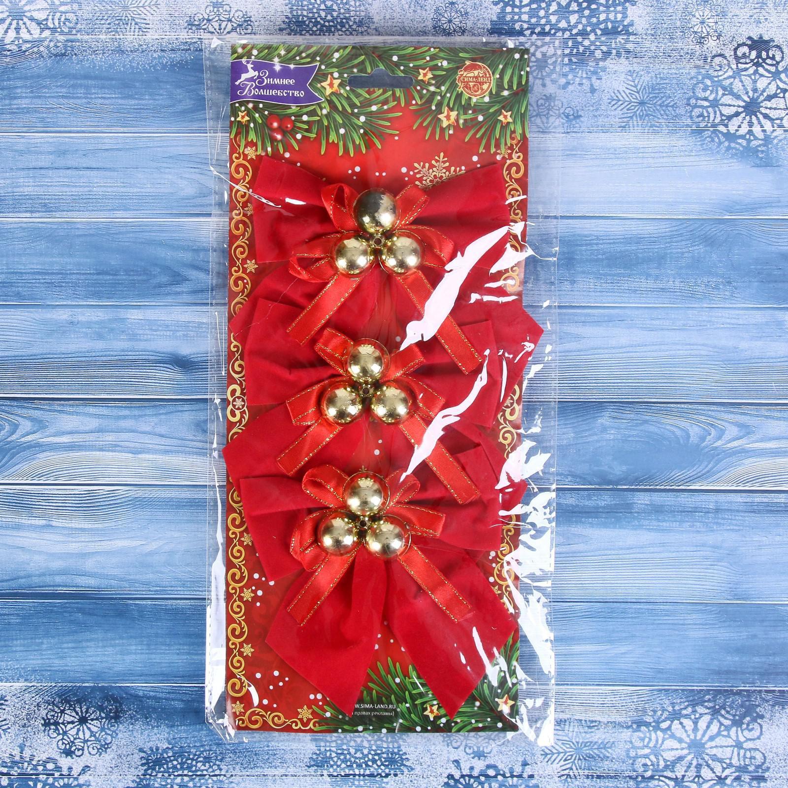 Ёлочные игрушки 3 шт. «зимнее волшебство. бант с бубенцами» пластик, 10 10 см, золотисто-красный