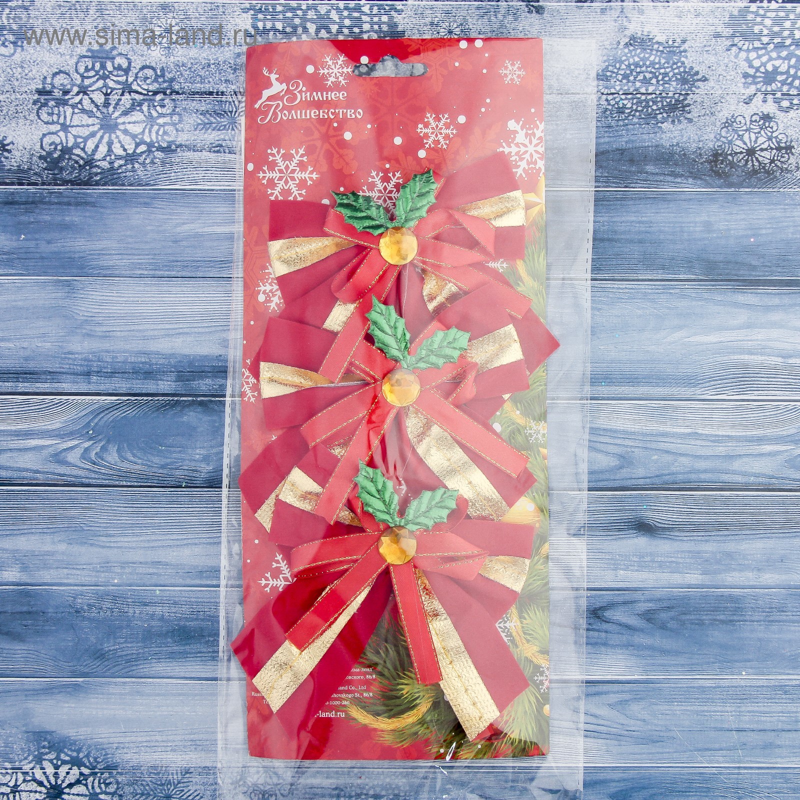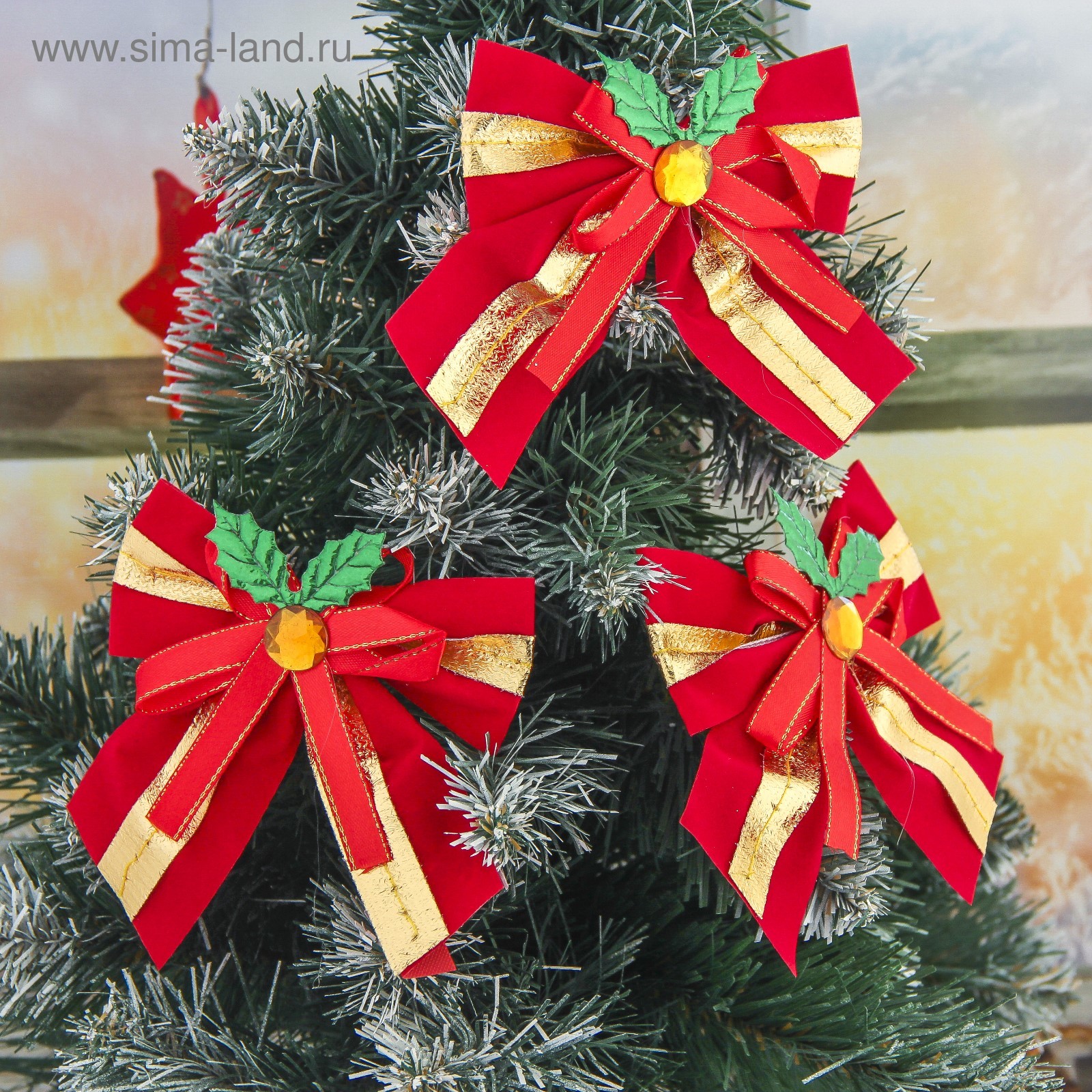 Ёлочные игрушки 3 шт. «зимнее волшебство. бант с остролистом», бантики, 10.5 10 см, золотисто-красный