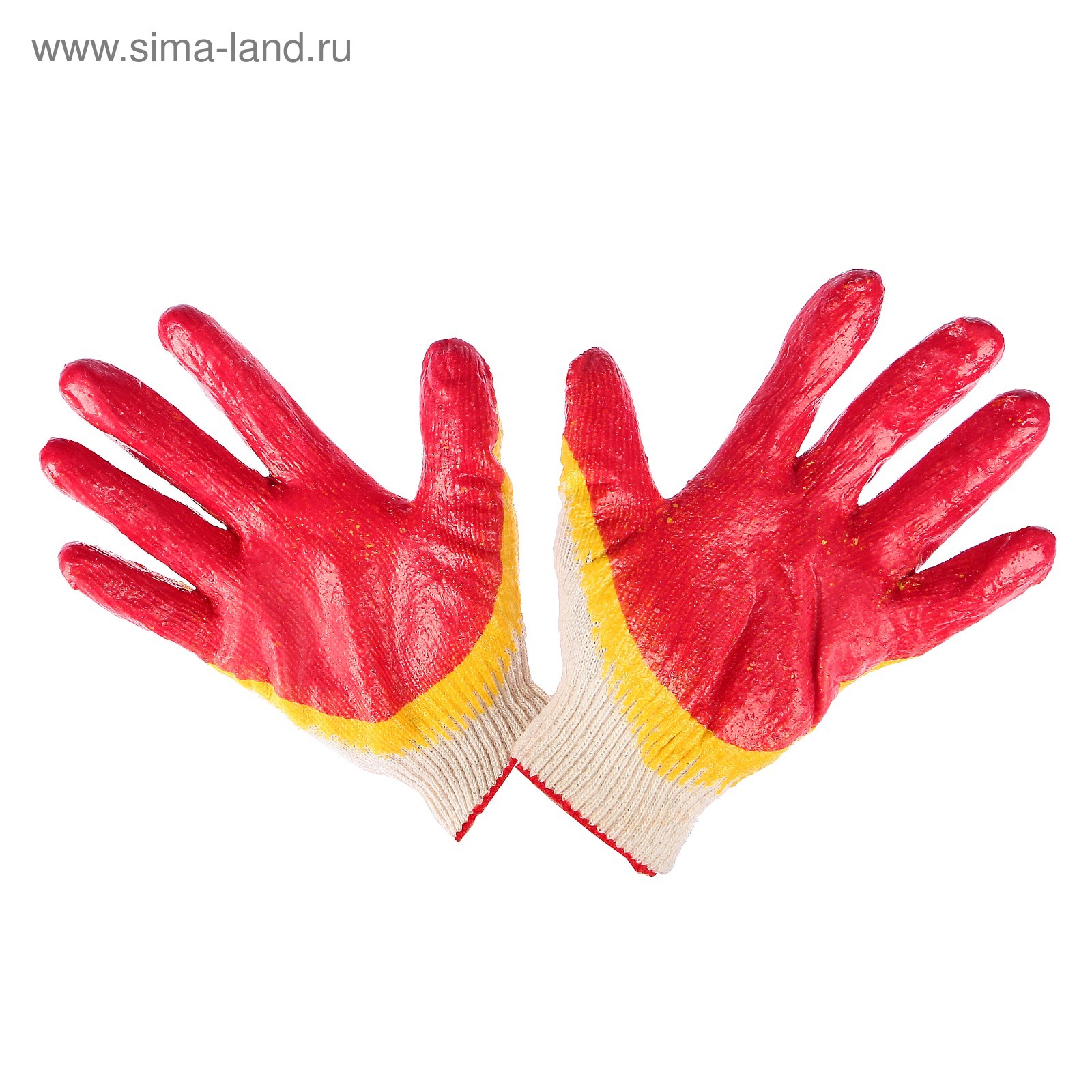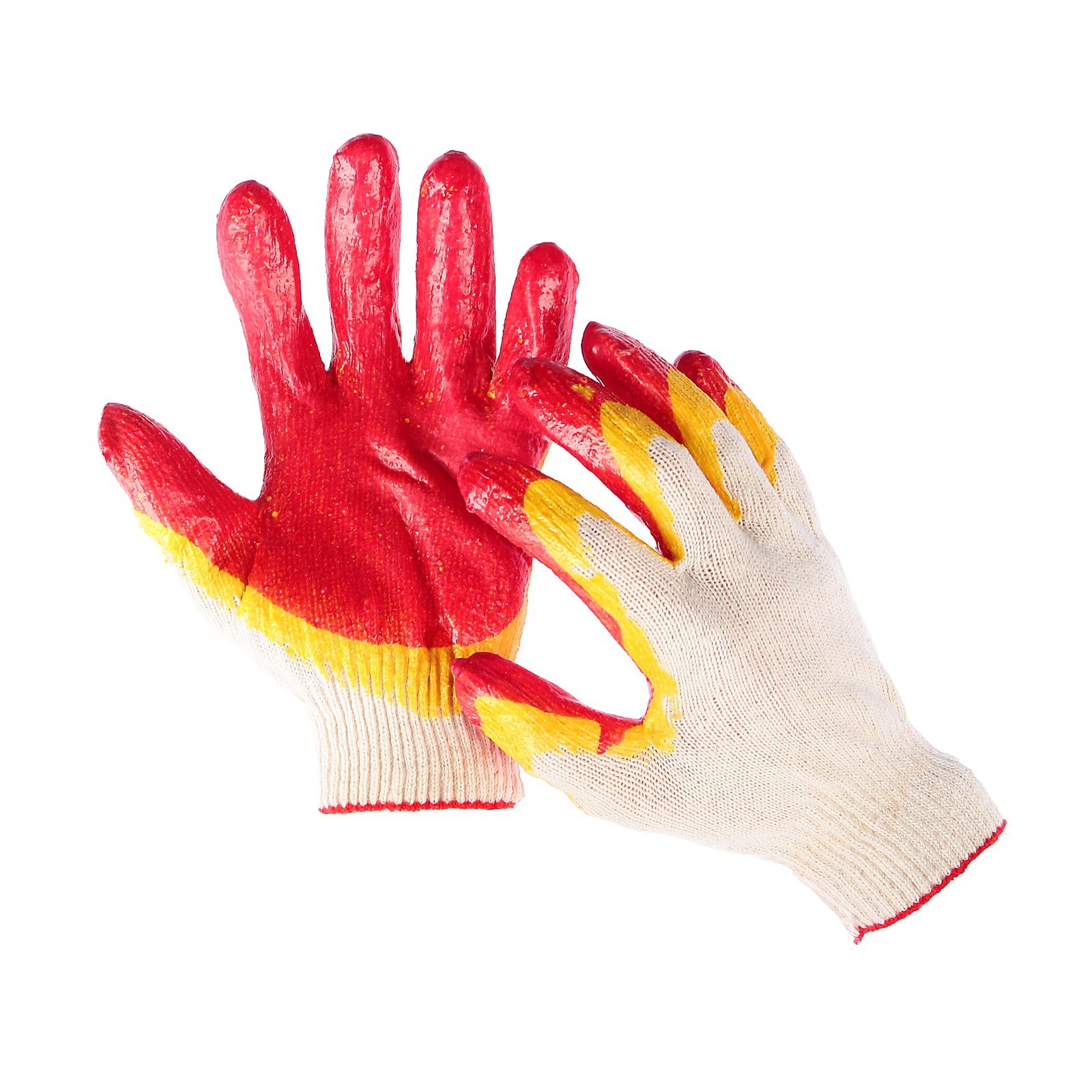 Перчатки садовые, х/б, вязка 13 класс, размер 9, латексный облив, красные