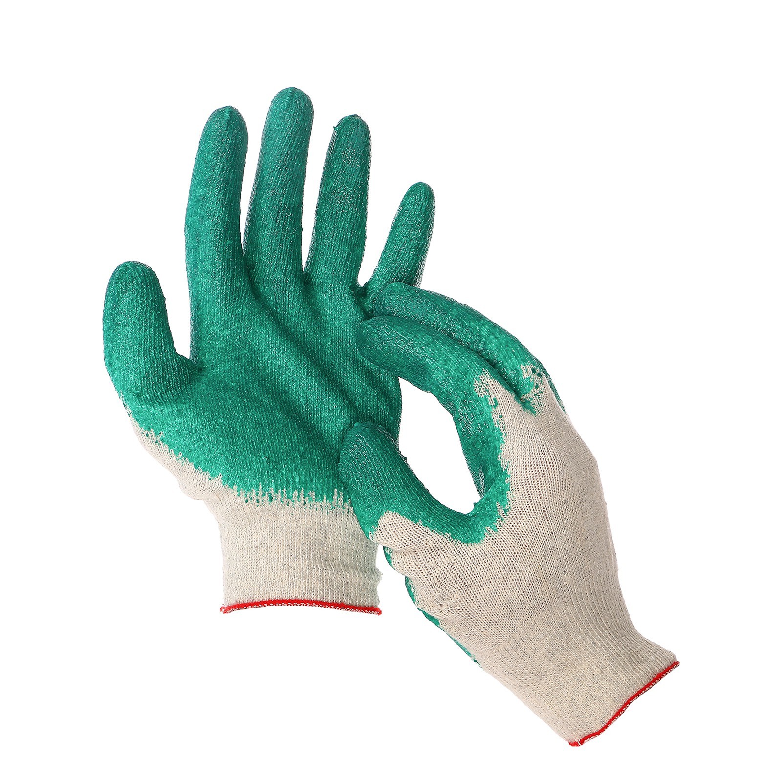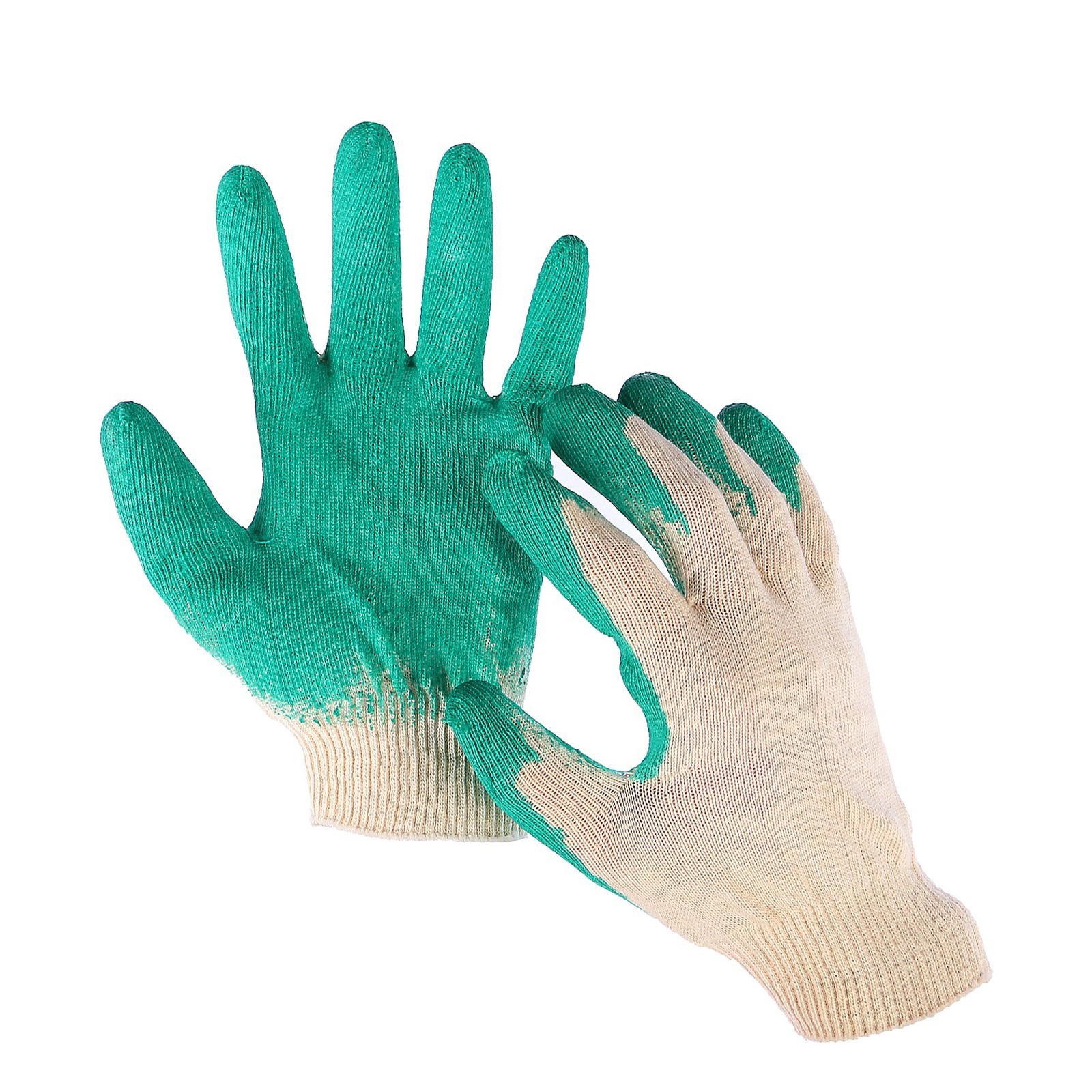 Перчатки садовые, х/б, вязка 13 класс, размер 9, латексный облив, зелёные