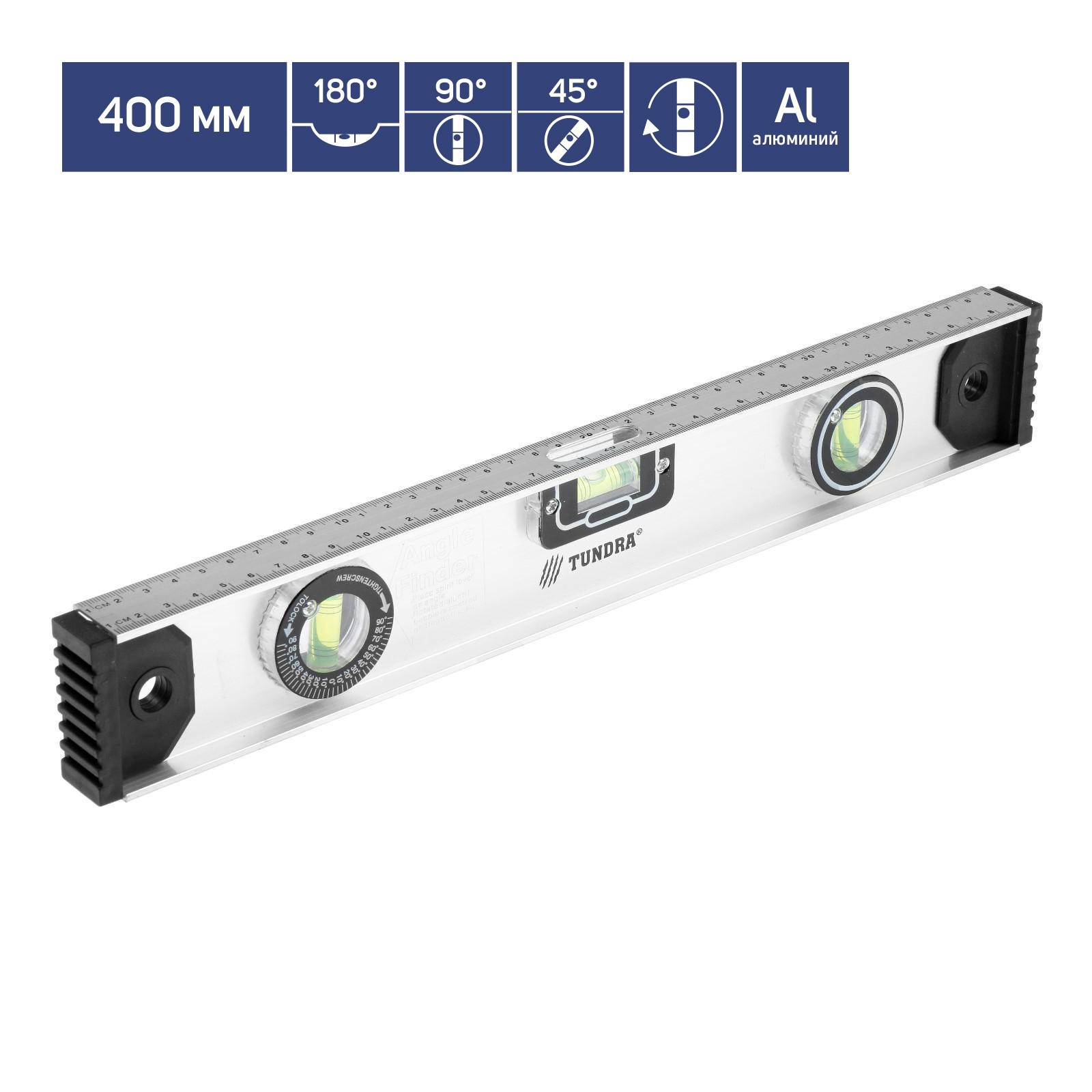 Уровень алюминиевый тундра «рельс», 3 глазка (1 поворотный), 400 мм