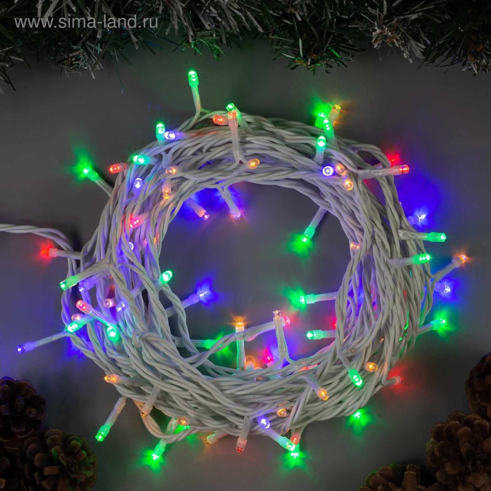 Гирлянда «нить» 10 м, Ip44, белая нить, 100 Led, свечение мульти, 8 режимов, 220 в