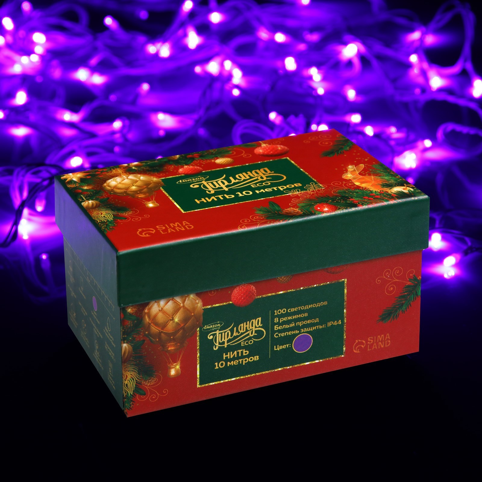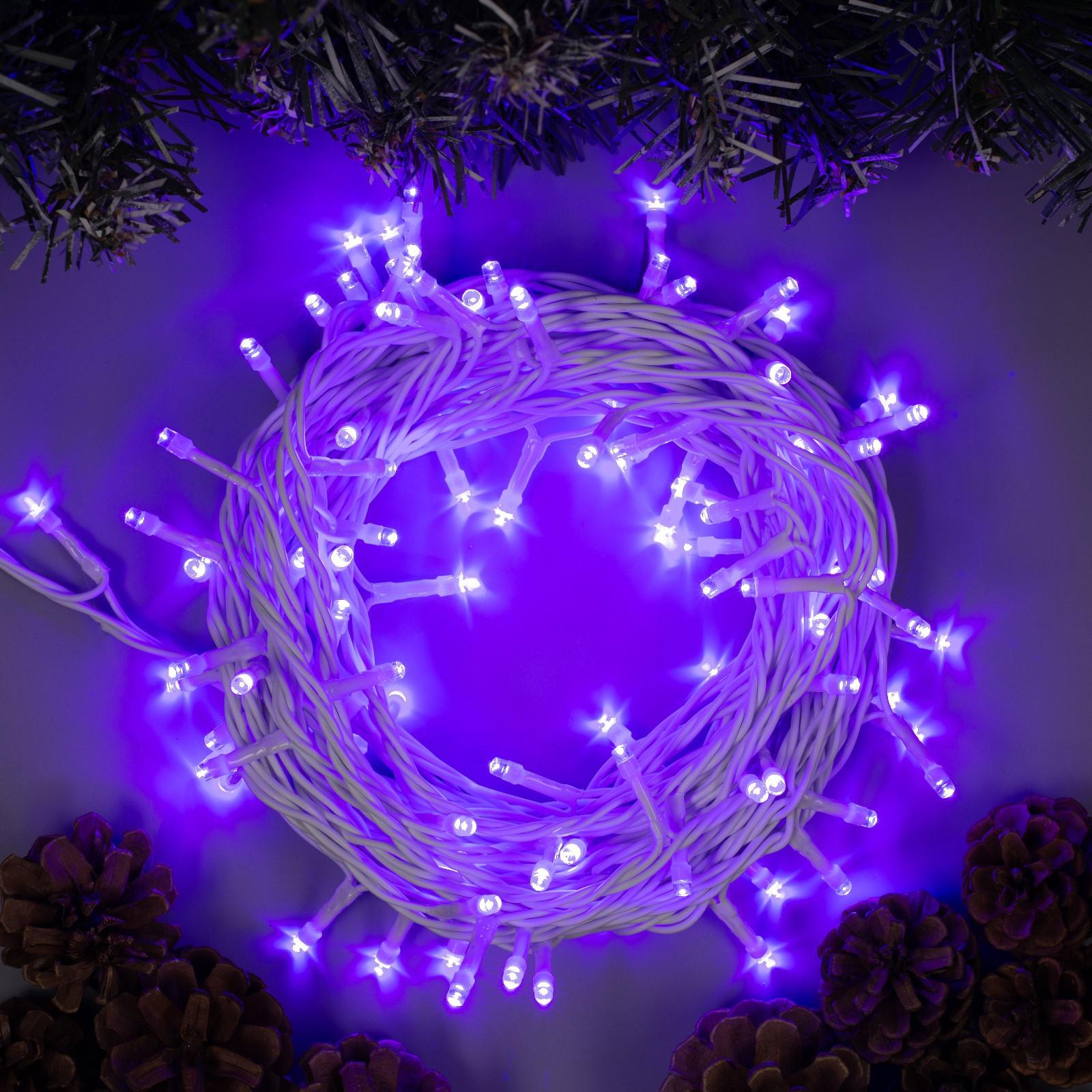 Гирлянда «нить» 10 м, Ip44, белая нить, 100 Led, свечение фиолетовое, 8 режимов, 220 в