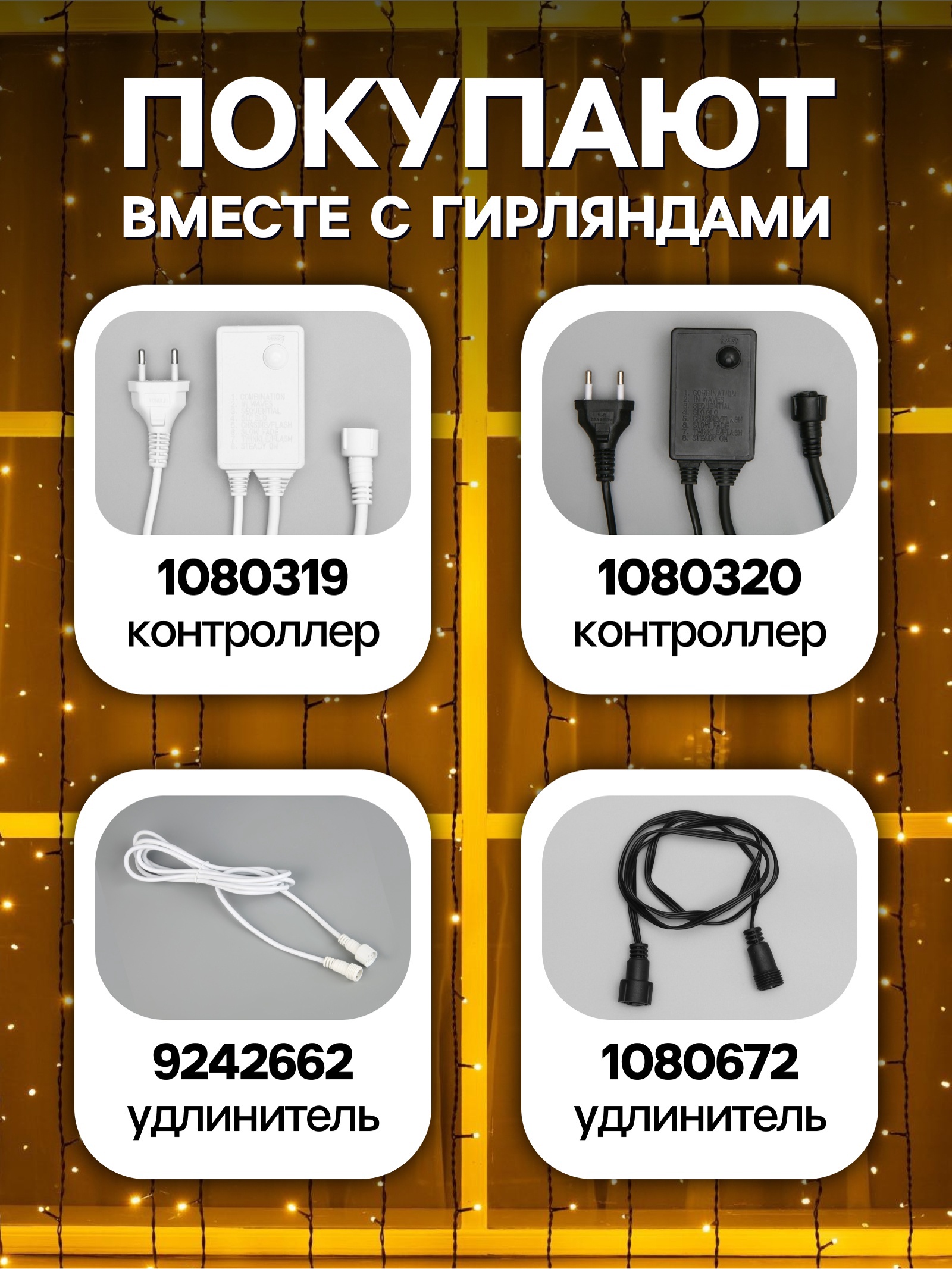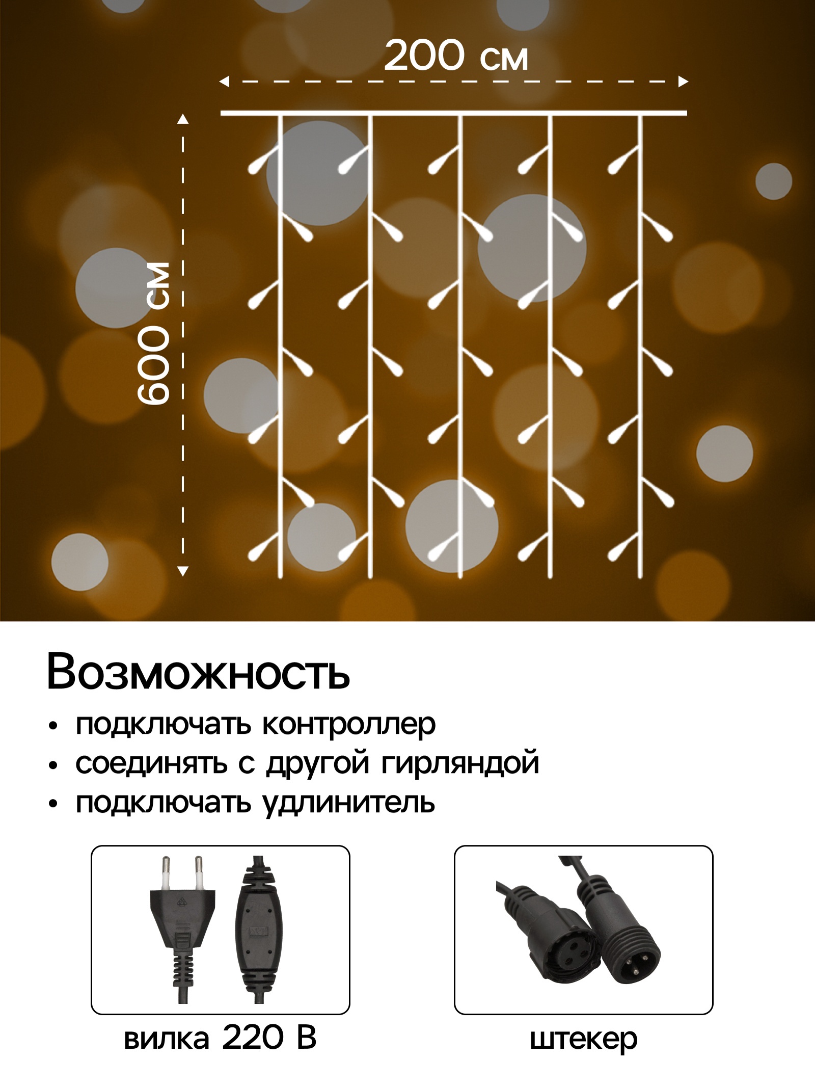 Гирлянда «занавес» 2 6 м, Ip44, умс, тёмная нить, 1440 Led, свечение тёплое белое, 220 в