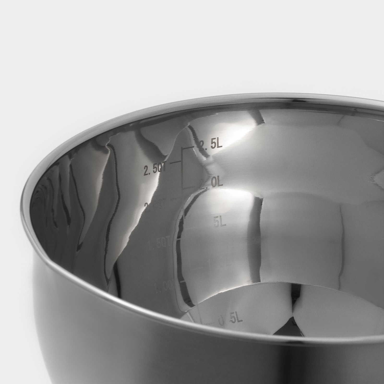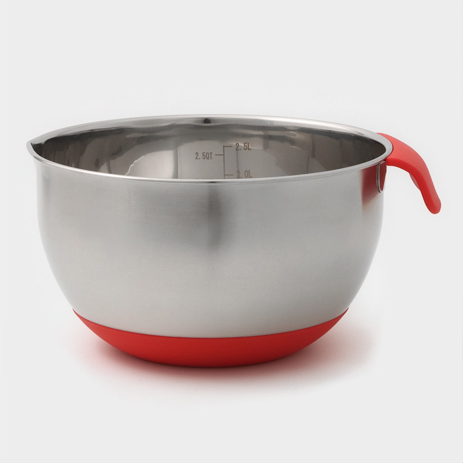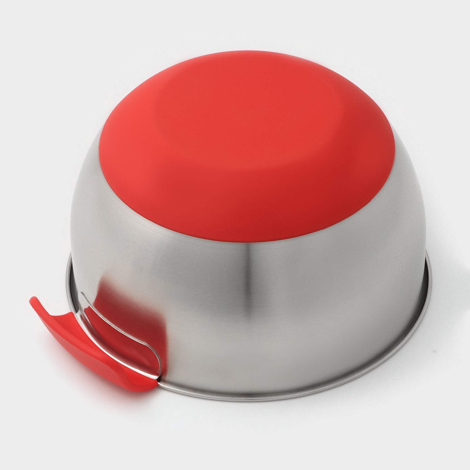Миска из нержавеющей стали, 2,5 л, 23,5x20,5x11,5 см, с противоскользящим дном и мерной шкалой, силиконовая ручка, цвет микс