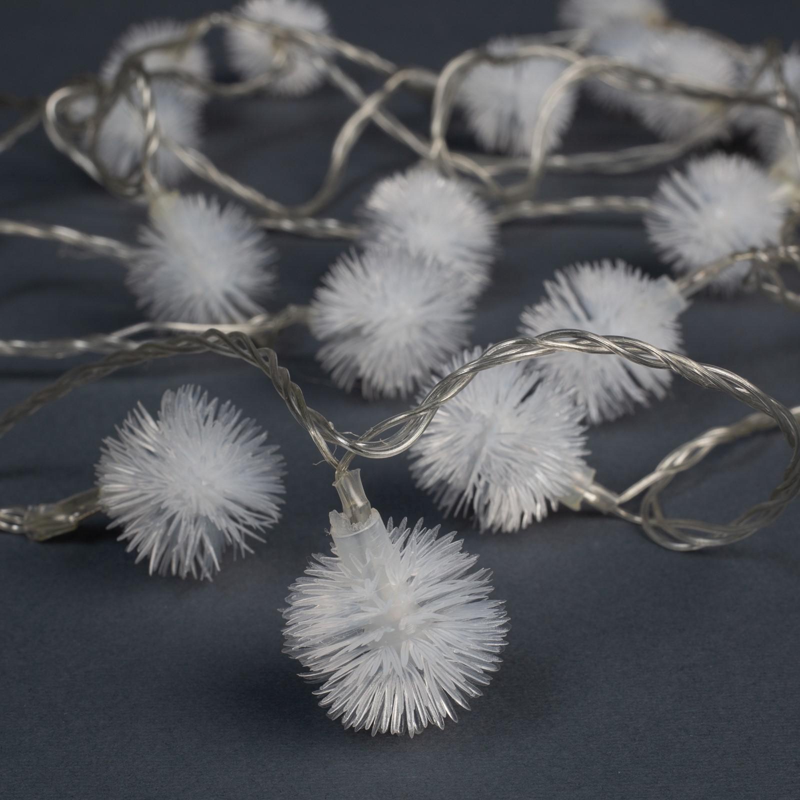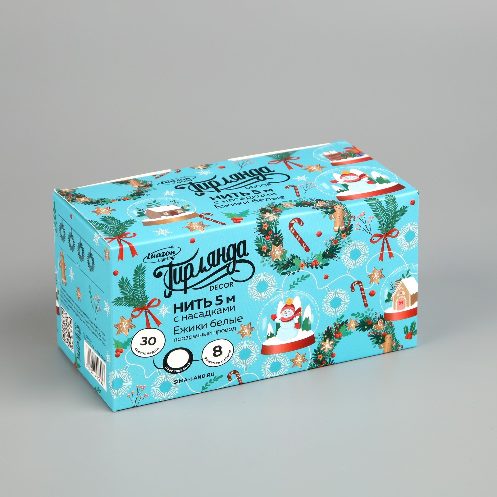 Гирлянда «нить» 5 м с насадками «ёжики белые», Ip20, прозрачная нить, 30 Led, свечение белое, 8 режимов, 220 в