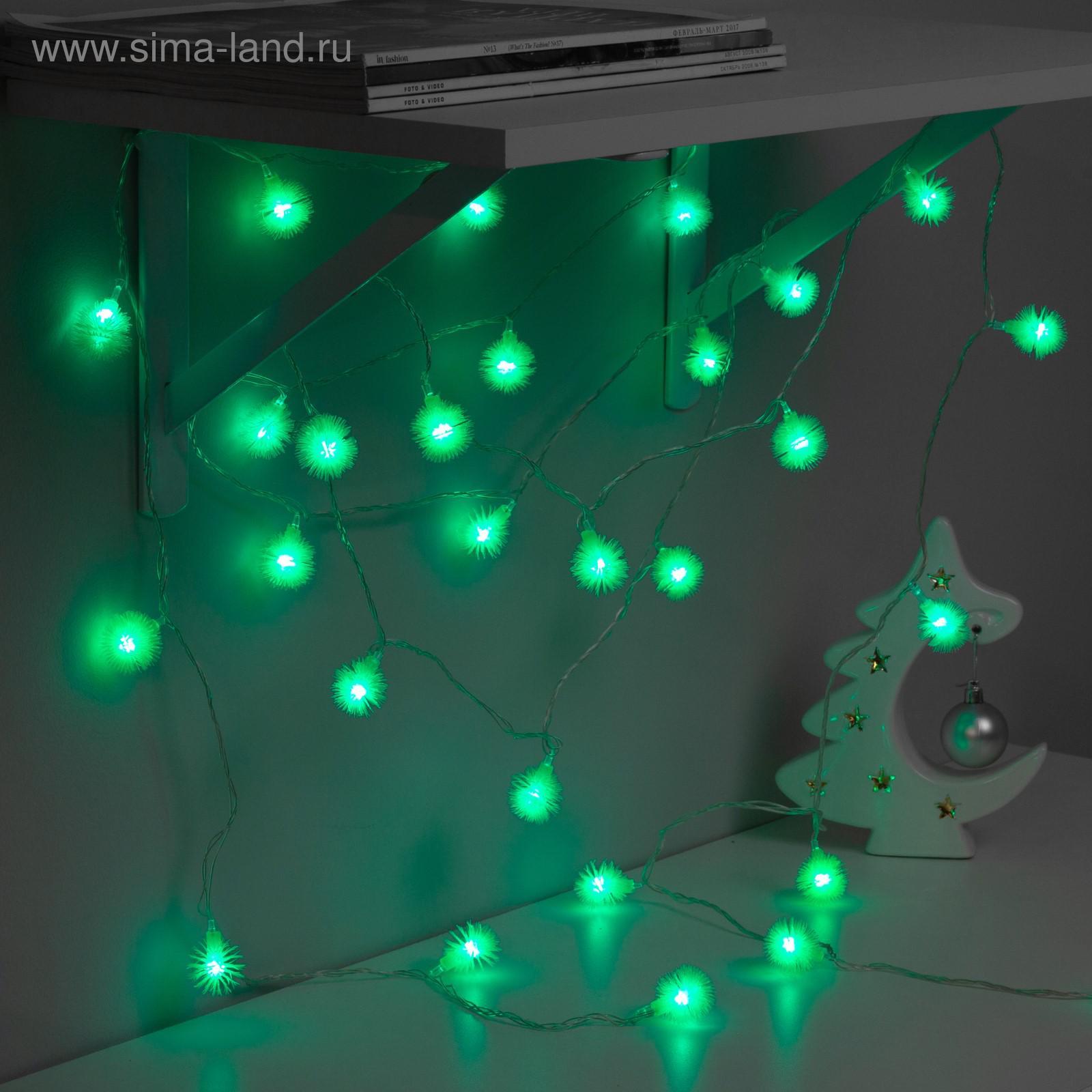 Гирлянда «нить» 5 м с насадками «ёжики зелёные», Ip20, прозрачная нить, 30 Led, свечение зелёное, 8 режимов, 220 в