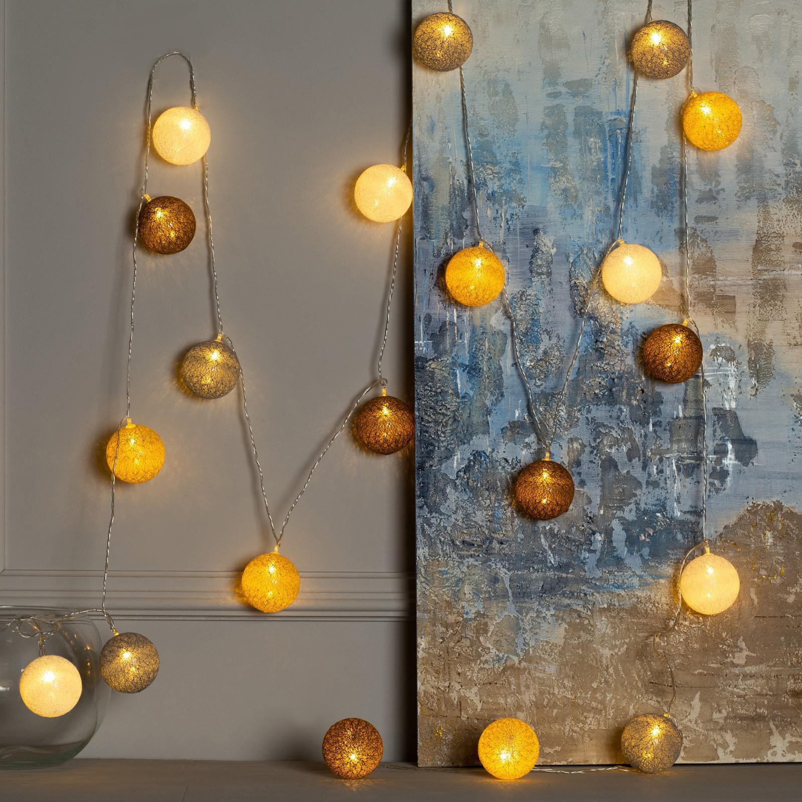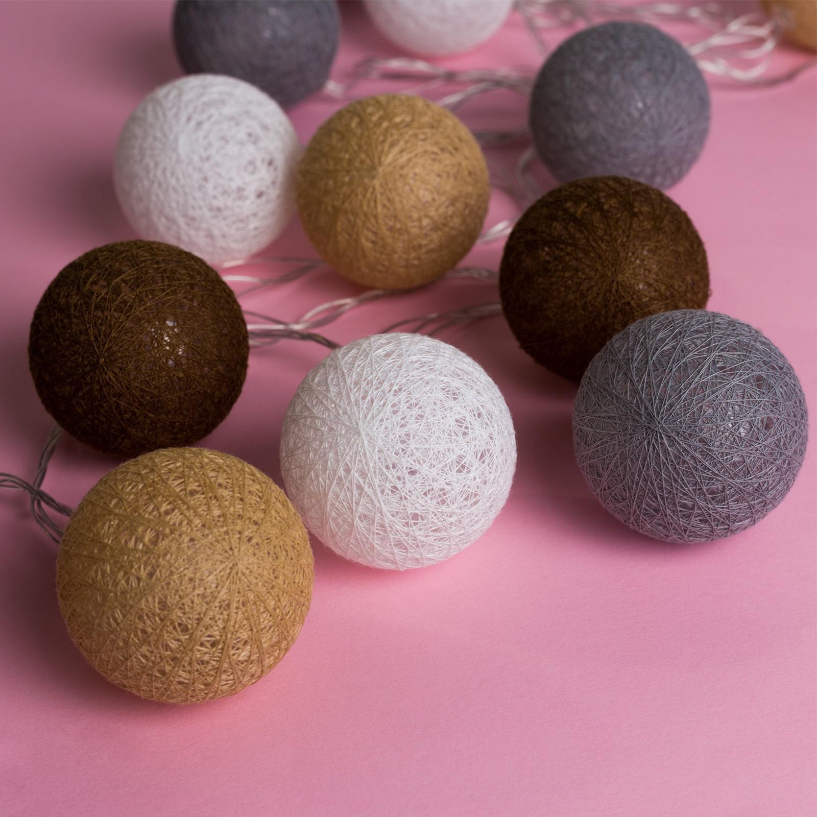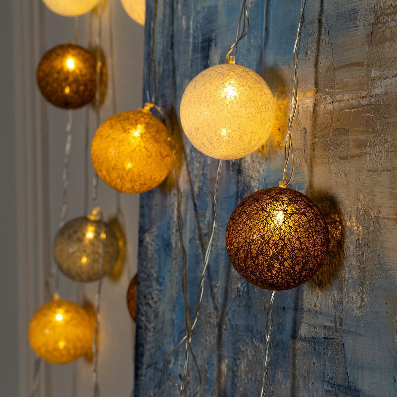 Гирлянда - нить, 5 м с насадками «клубки кремовые», Ip20, прозрачная нить, 20 Led, свечение тёплое белое, 220 в