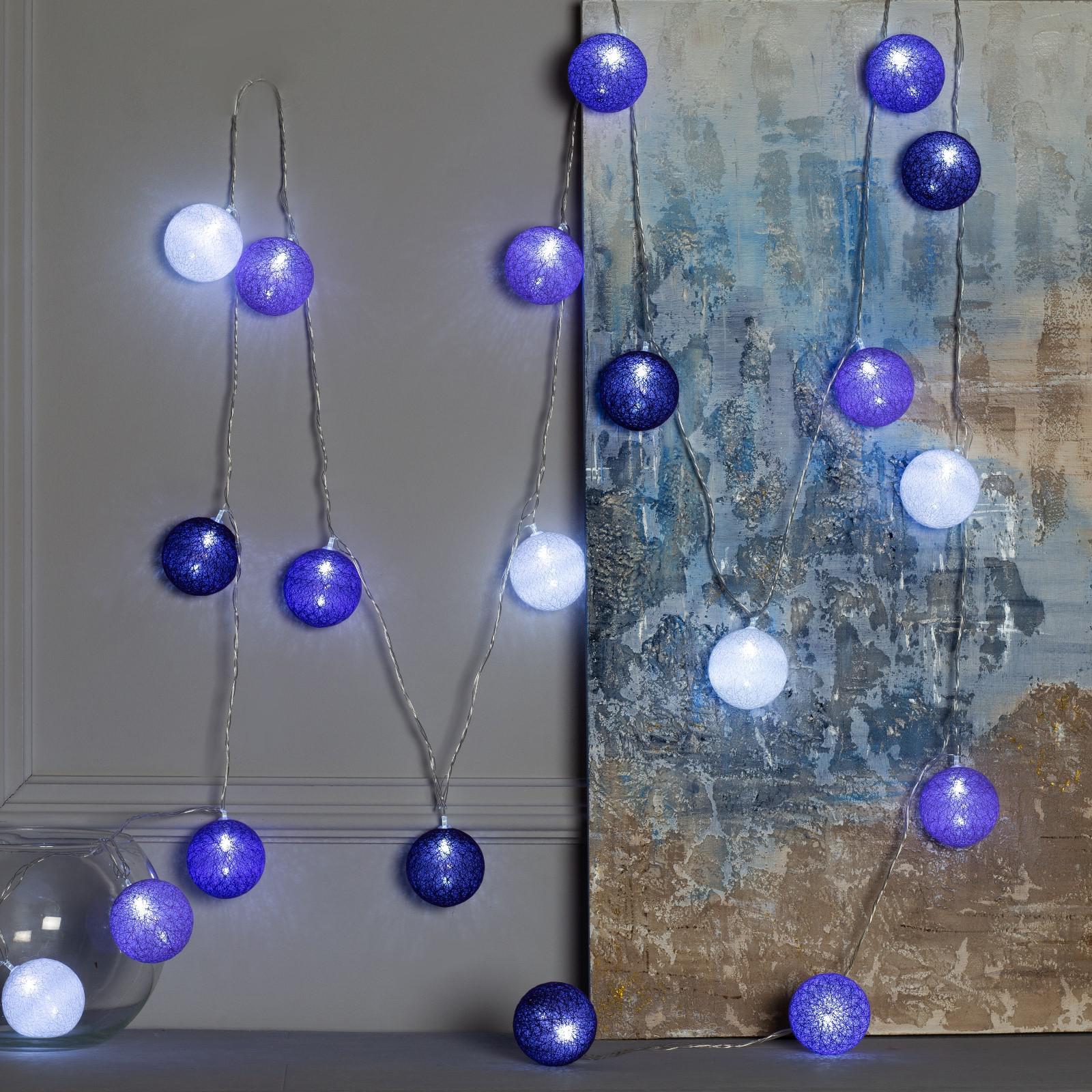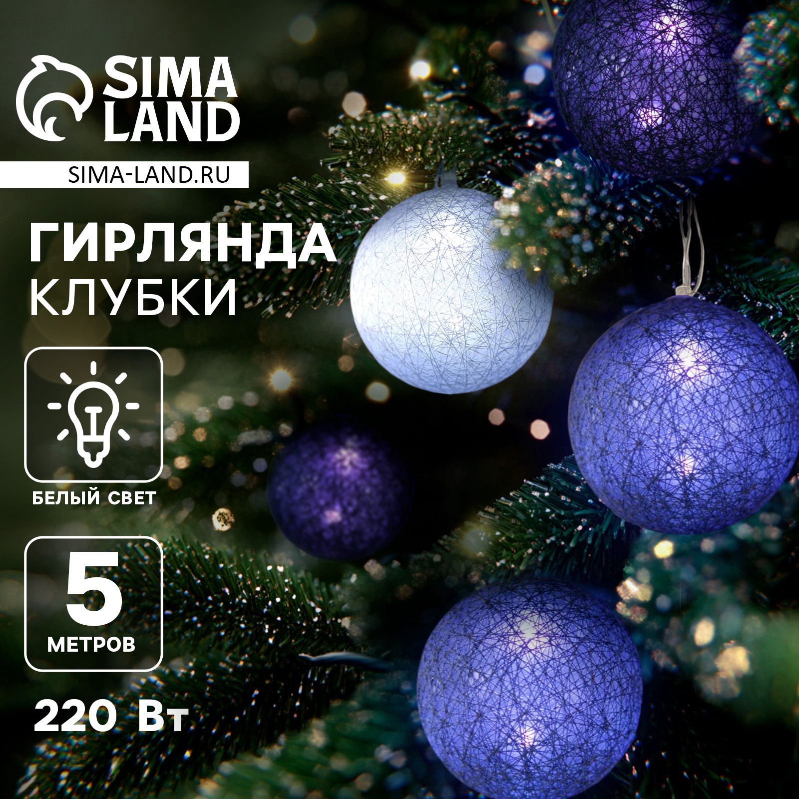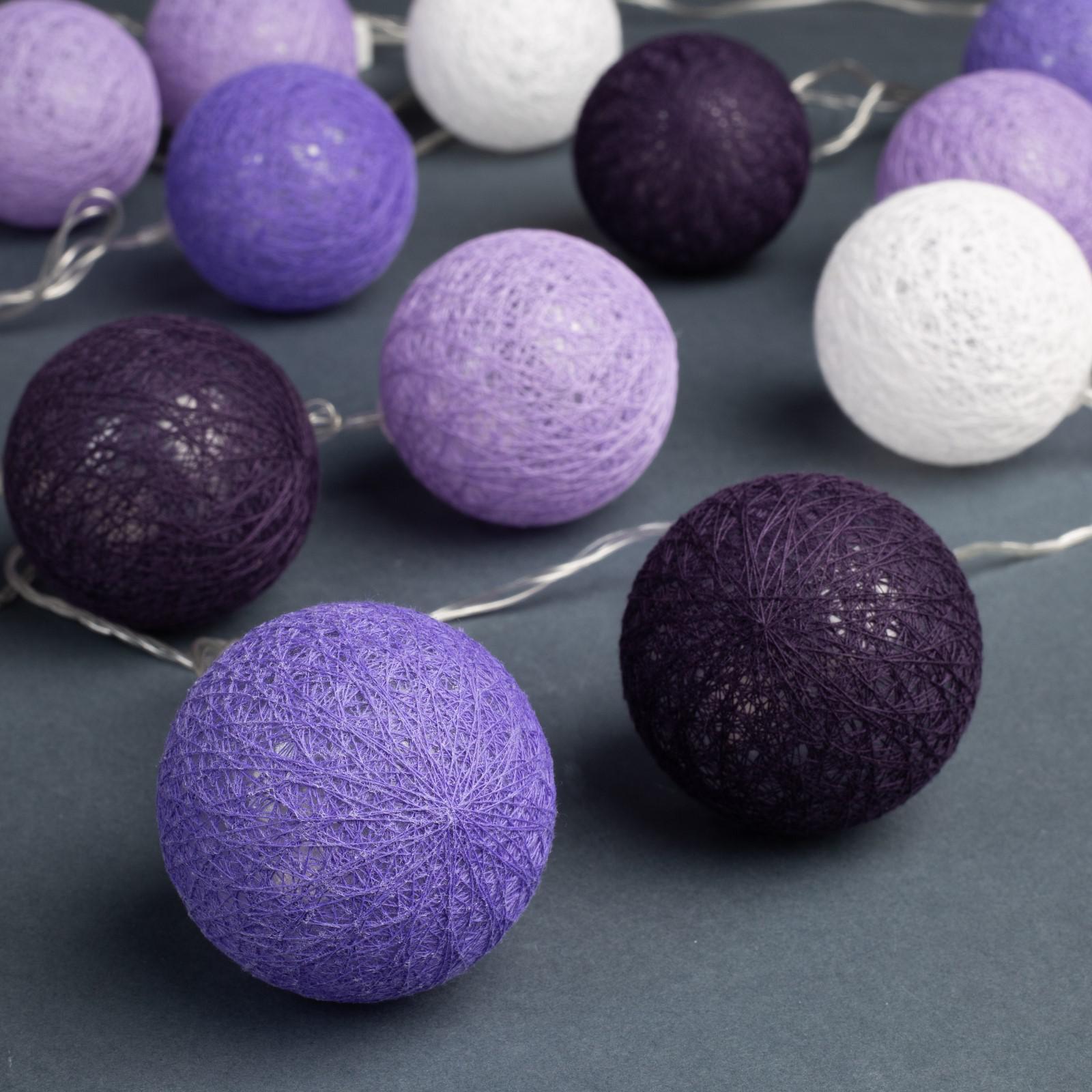 Гирлянда - нить, 5 м с насадками «клубки сиреневые», Ip20, прозрачная нить, 20 Led, свечение белое, 220 в