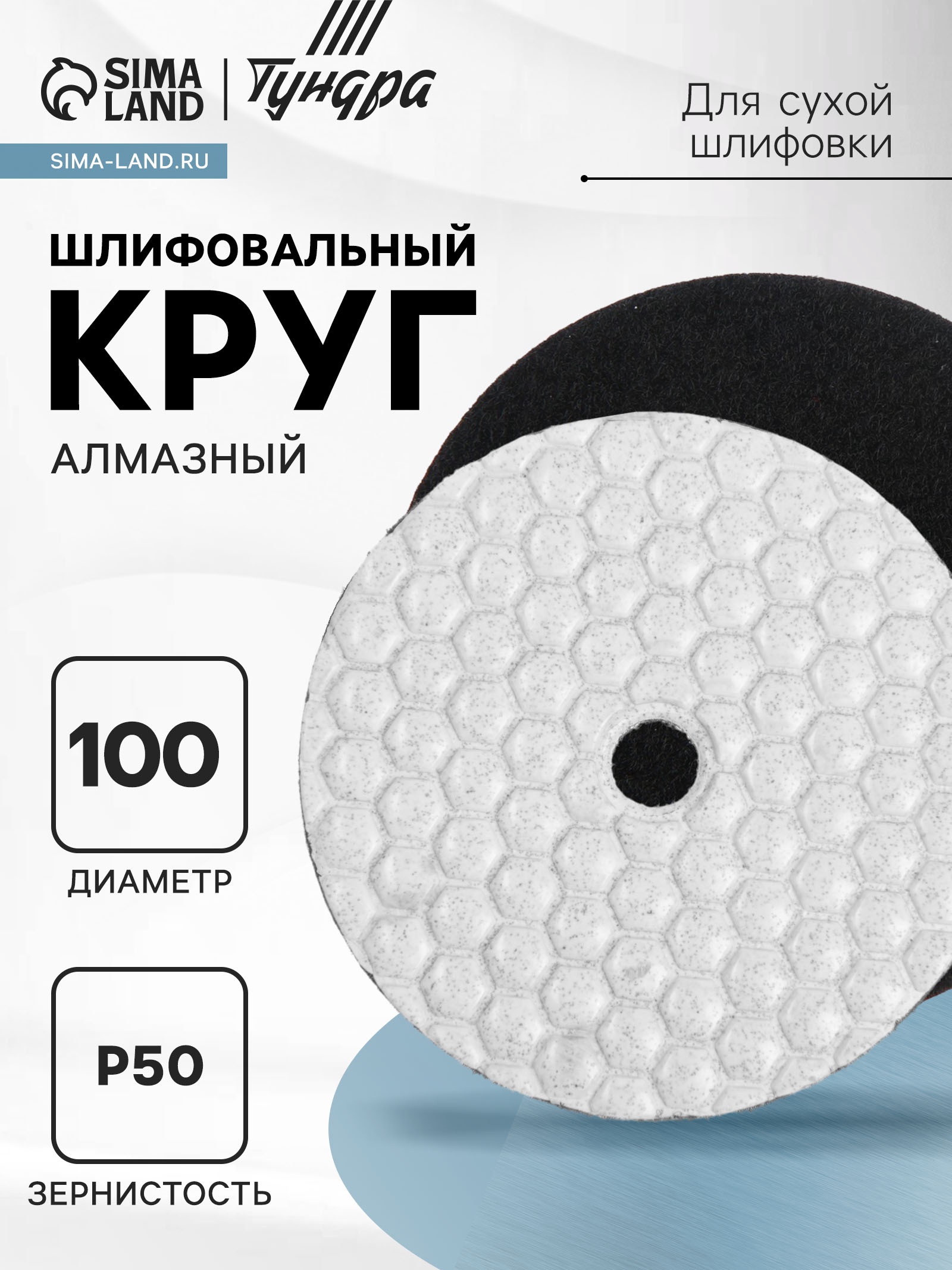 Алмазный гибкий шлифовальный круг тундра черепашка, для сухой шлифовки, 100 мм, № 50. Алмазные гибкие круги (АГШК) предназначены для шлифовки и полировки натурального и искусственного камня. Рабочая поверхность изделия состоит из алмазной крошки различной фракции и связующей полимерной основы. При работе с данным диском не нужно использовать охлаждающую жидкость. Алмазные круги имеют номер в зависимости от размера зерна алмазной крошки. Для полного цикла полировки (от зачистки до финишной обработки) понадобится 6 10 дисков разной зернистости, которые поочередно используются до достижения нужного результата. Диаметр, мм:100|Зернистость:P50|Назначение дисков:По камню|Вид шлифовки:Сухая|Страна:Китай  развернуть описание ▼