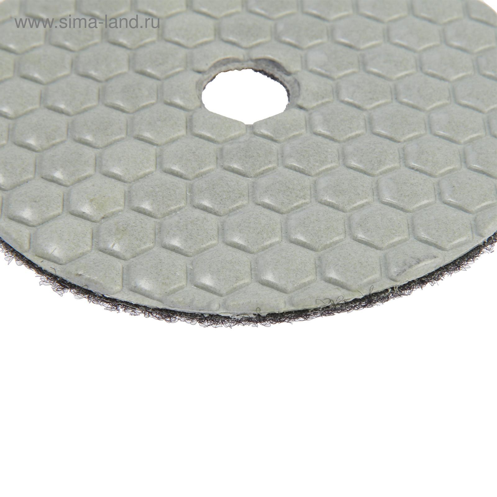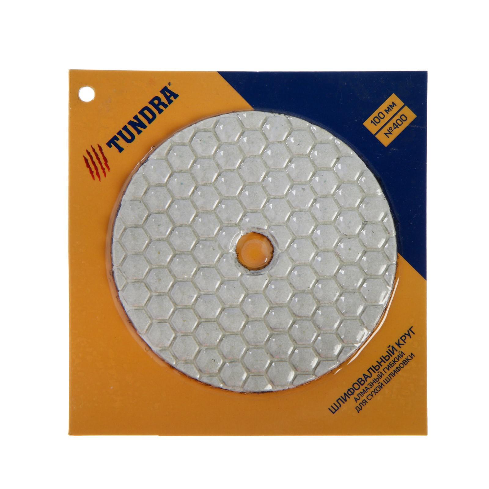 Алмазный гибкий шлифовальный круг тундра черепашка, для сухой шлифовки, 100 мм, № 400. Алмазные гибкие круги (АГШК) предназначены для шлифовки и полировки натурального и искусственного камня. Рабочая поверхность изделия состоит из алмазной крошки различной фракции и связующей полимерной основы. При работе с данным диском не нужно использовать охлаждающую жидкость. Алмазные круги имеют номер в зависимости от размера зерна алмазной крошки. Для полного цикла полировки (от зачистки до финишной обработки) понадобится 6 10 дисков разной зернистости, которые поочередно используются до достижения нужного результата. Диаметр, мм:100|Зернистость:P400|Назначение дисков:По камню|Вид шлифовки:Сухая|Страна:Китай  развернуть описание ▼