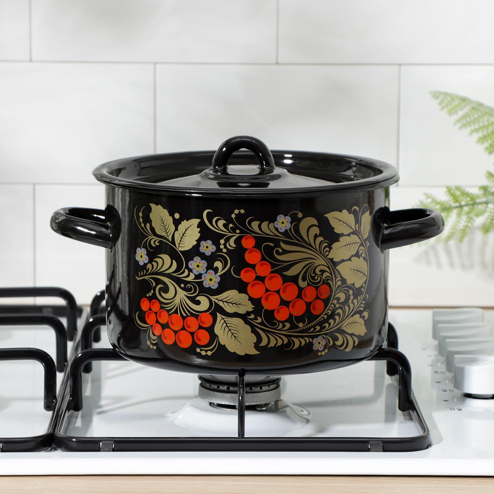 Кастрюля 2,9 л, индукция, металлическая крышка, цвет и деколь микс