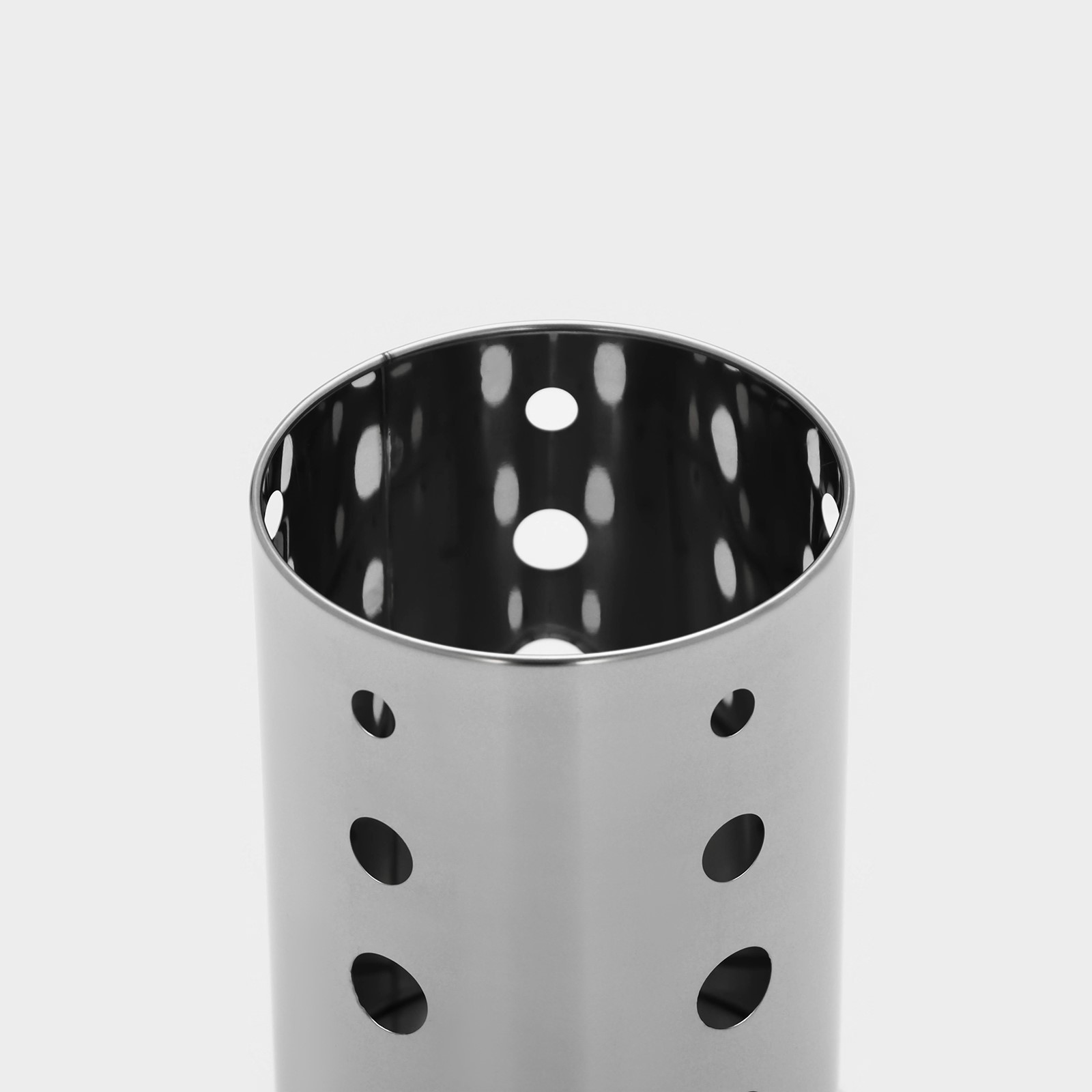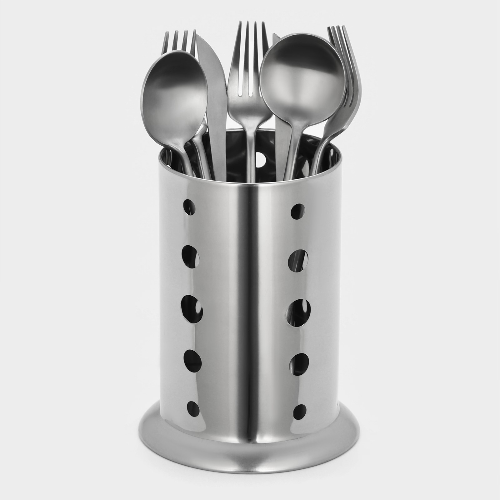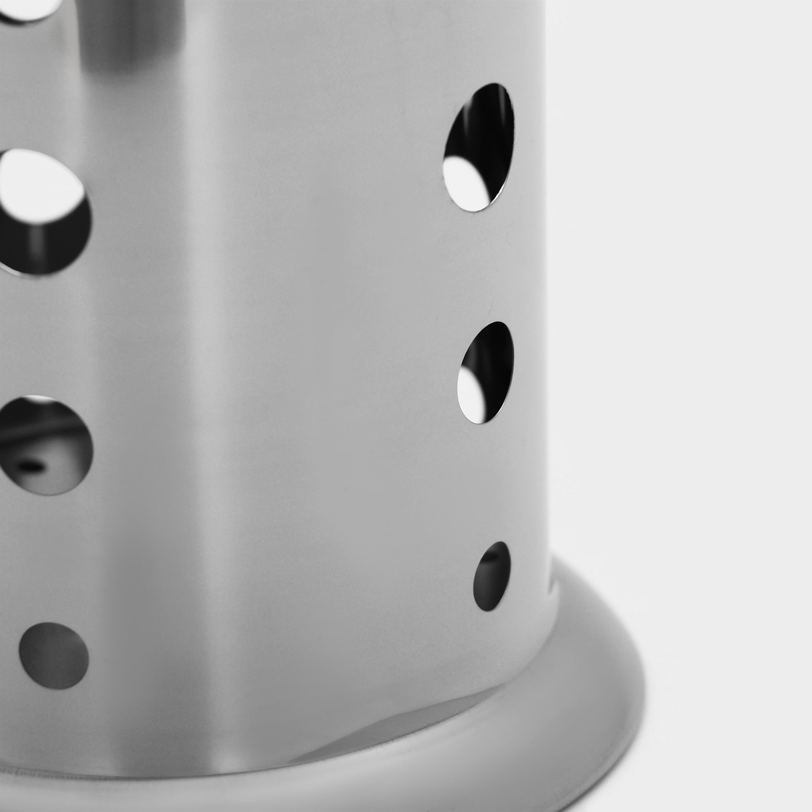 Подставка для столовых приборов имеет небольшие отверстия для отвода лишней влаги. Подходит для ложек, вилок, ножей и других предметов кухонной утвари.