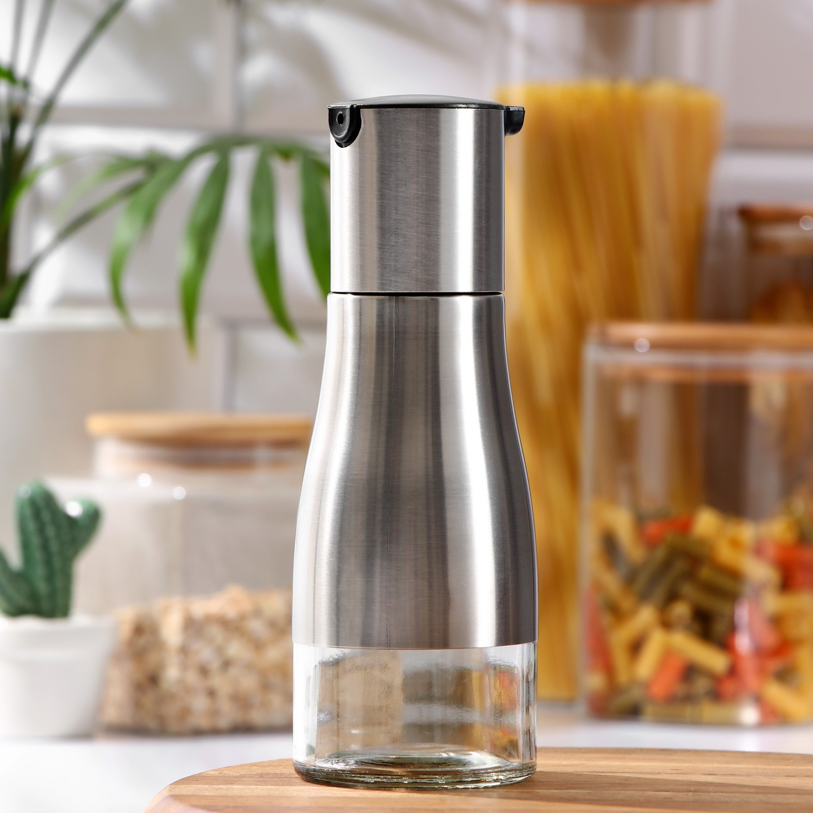 Бутыль стеклянная для соусов и масла «стиль», 250 мл, H=18,5 см, цвет крышки чёрный