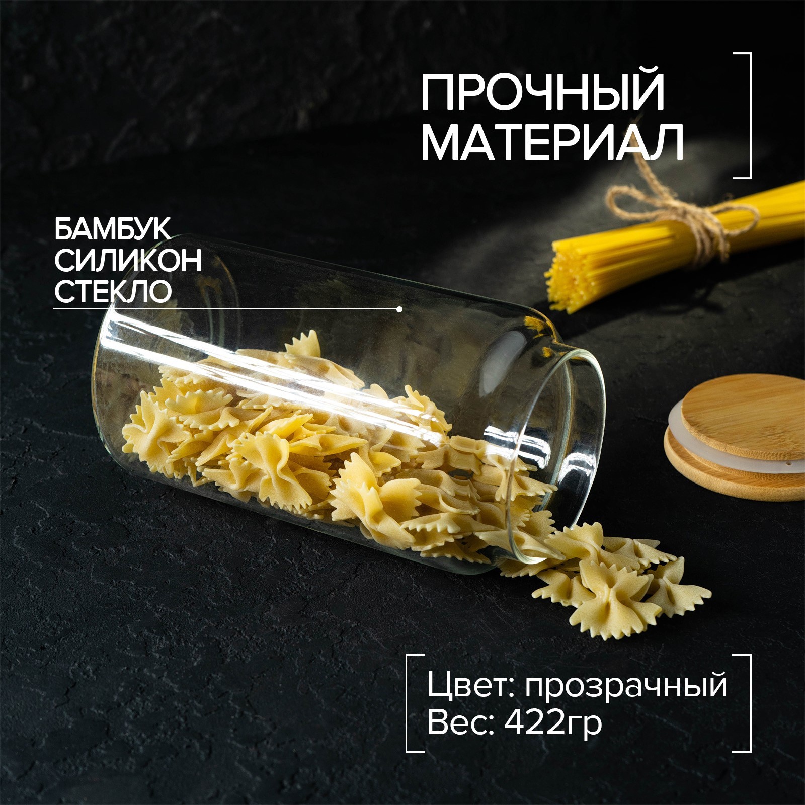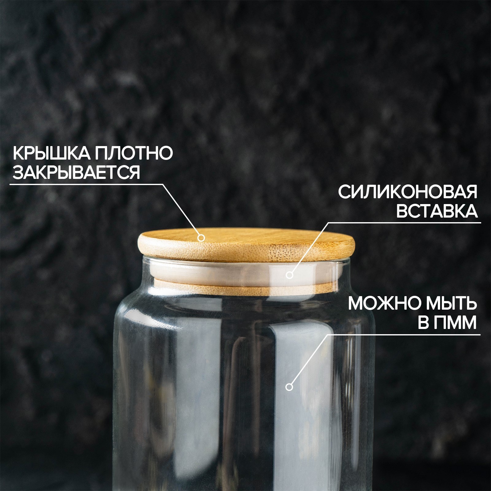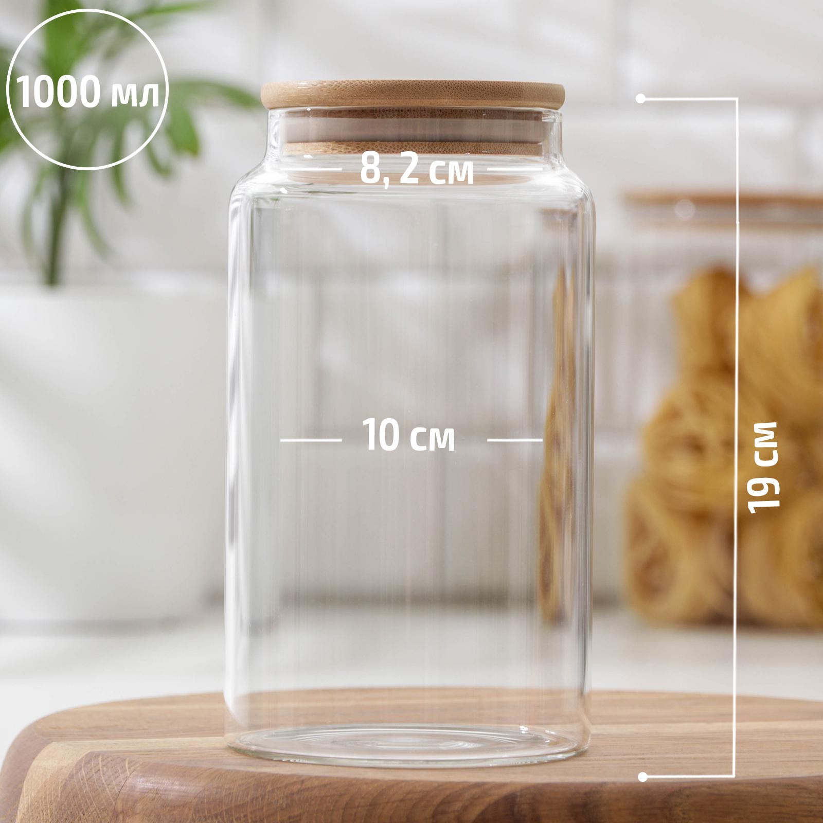 Банка стеклянная для сыпучих продуктов с бамбуковой крышкой Magistro «эко», 1 л, 9,5x18 см