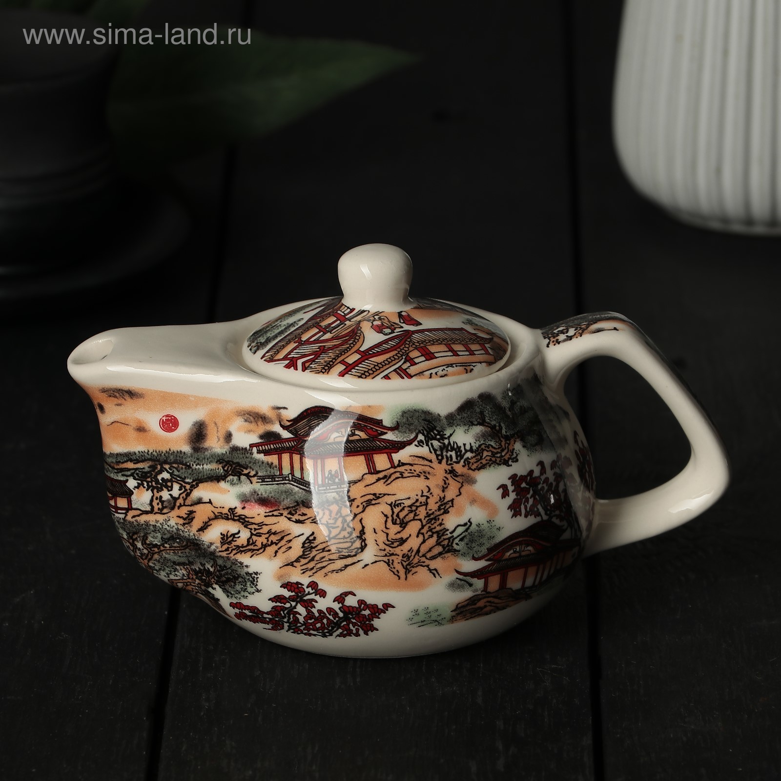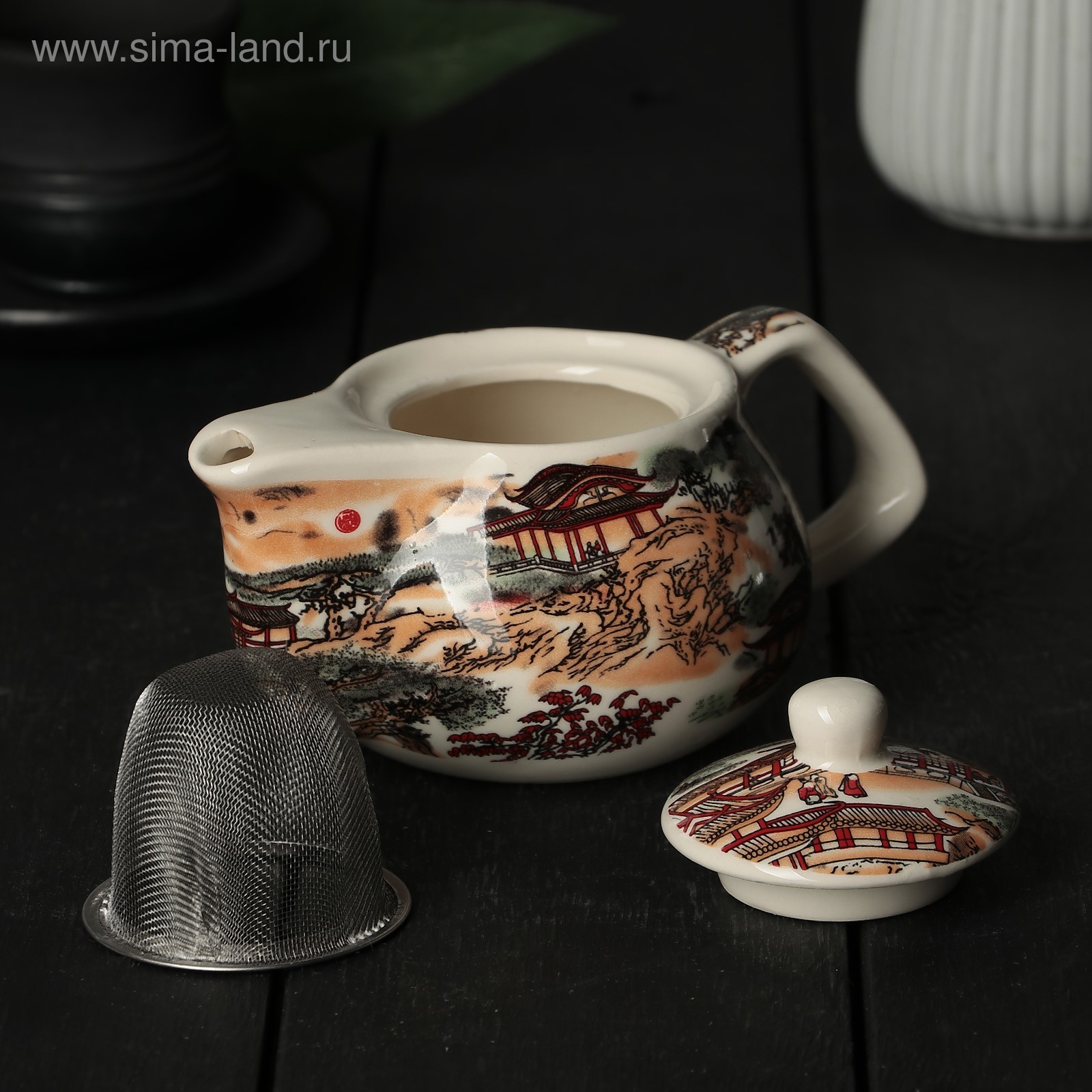Чайник керамический заварочный с металлическим ситом «пейзаж», 200 мл