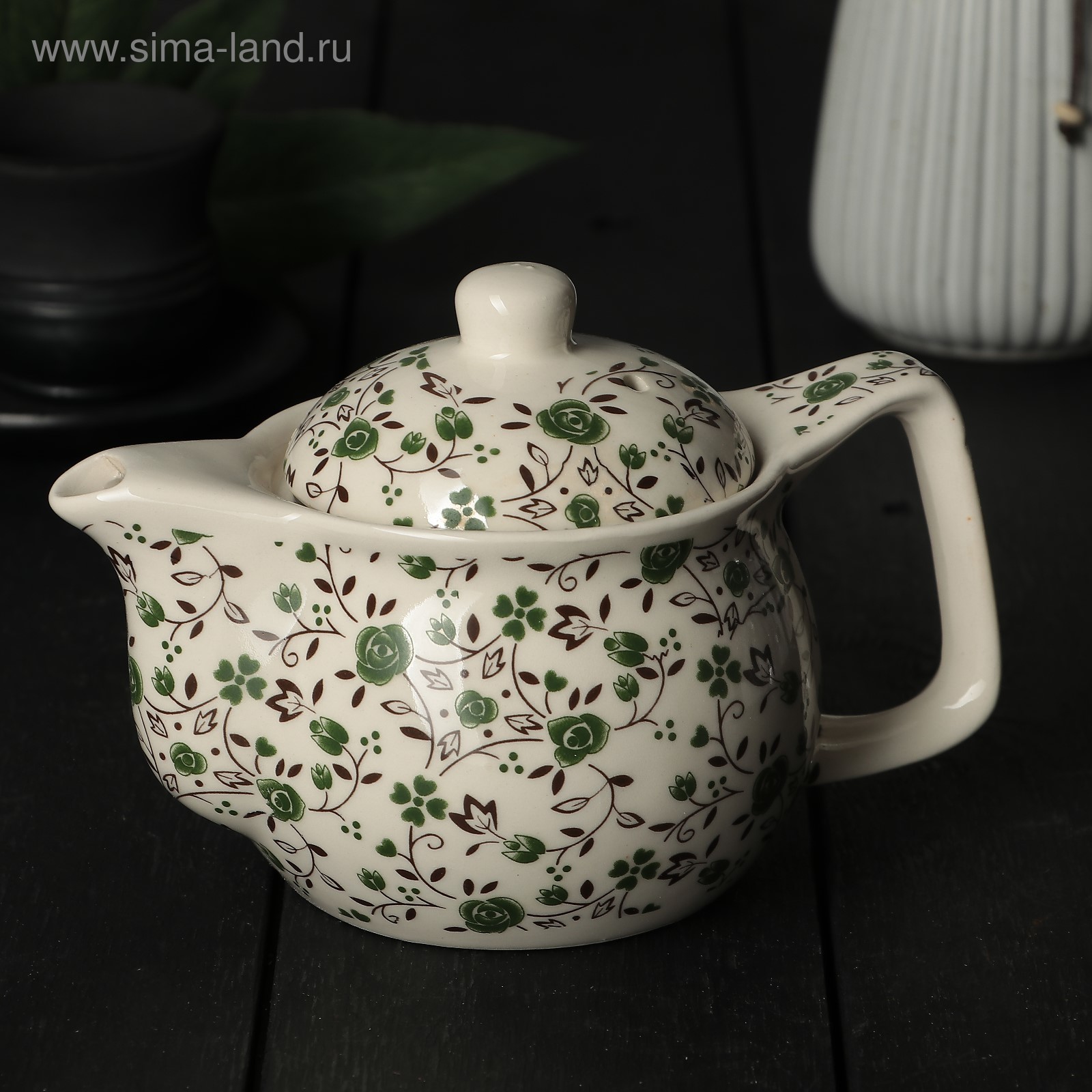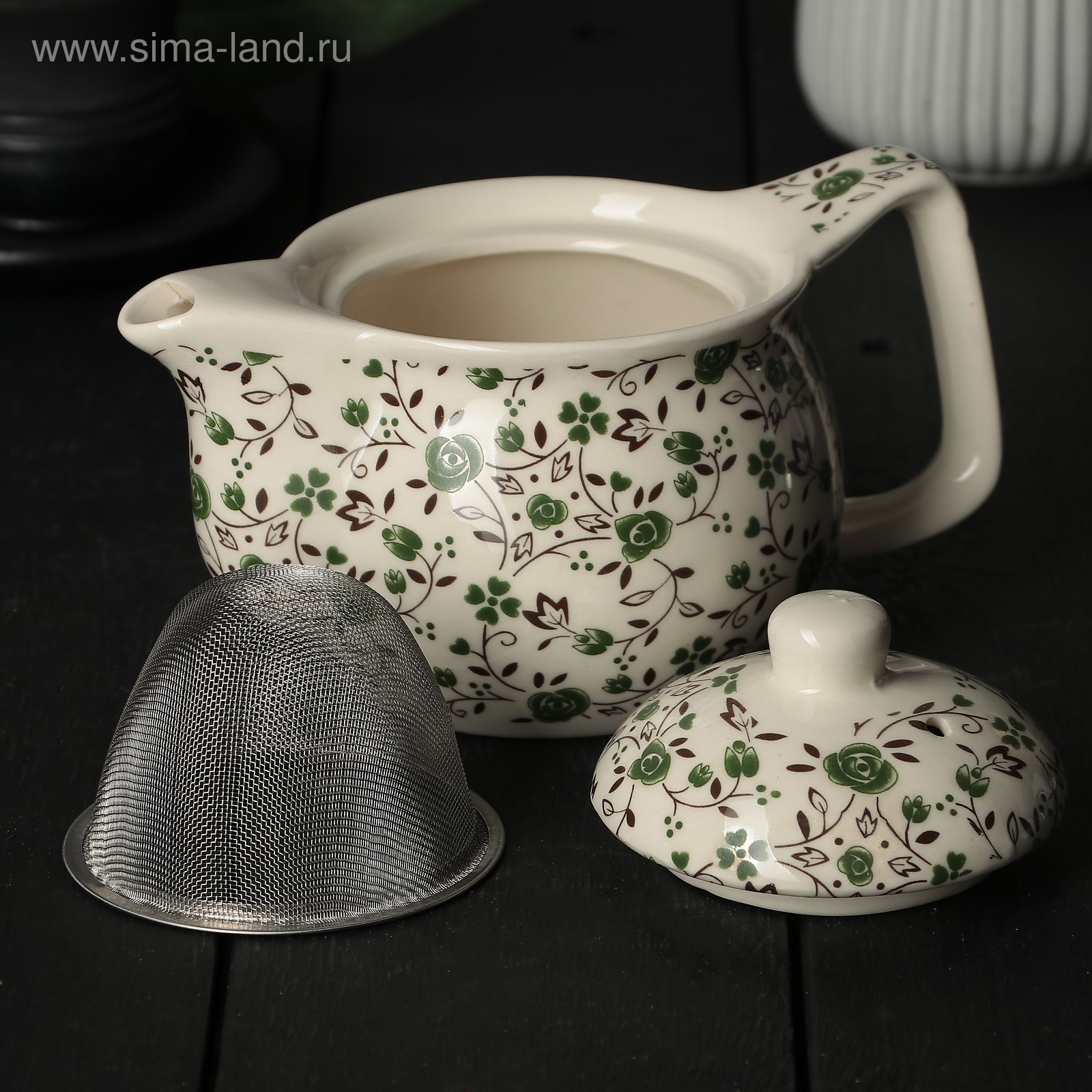 Чайник керамический заварочный «виньетки», 350 мл, металлическое сито, цвет зелёный