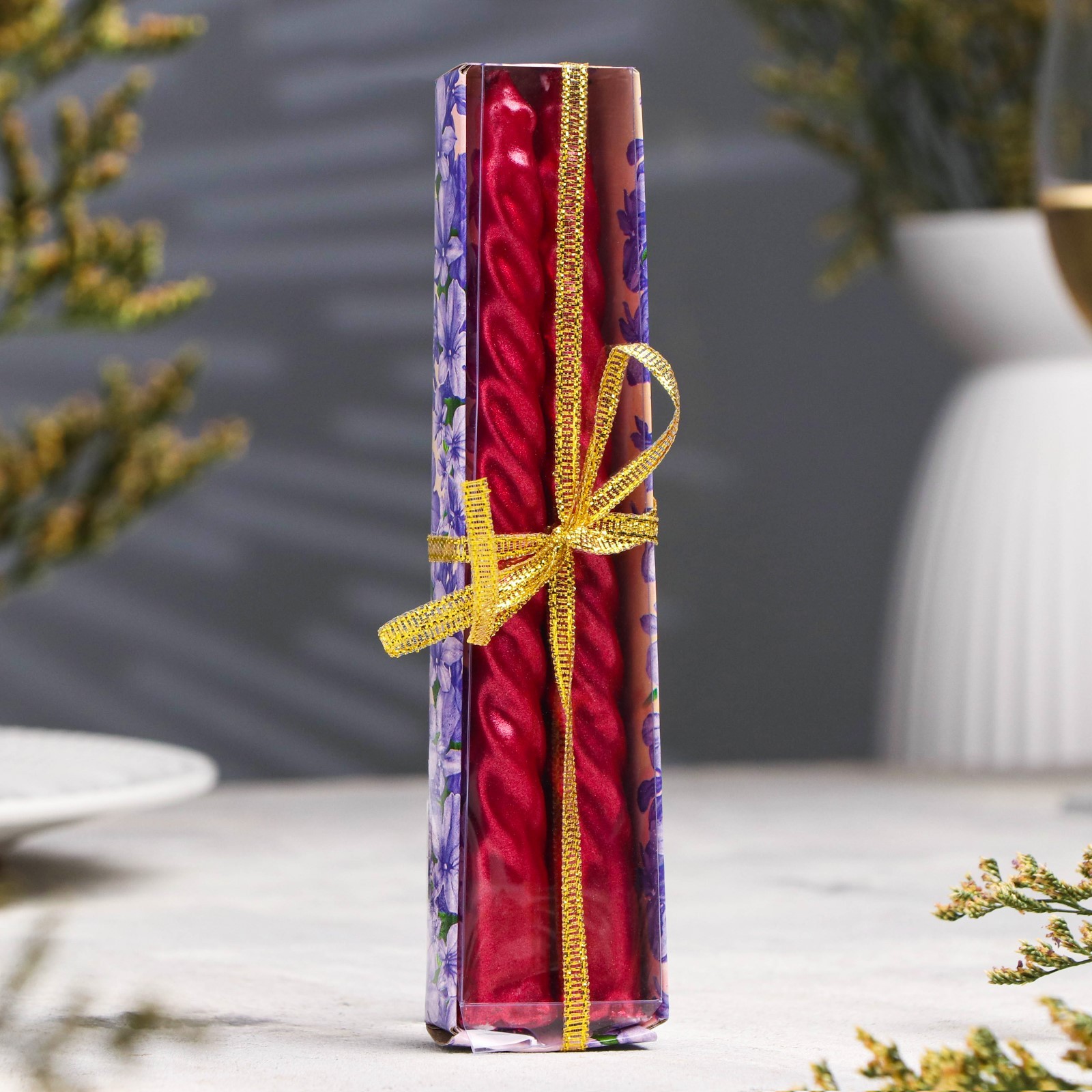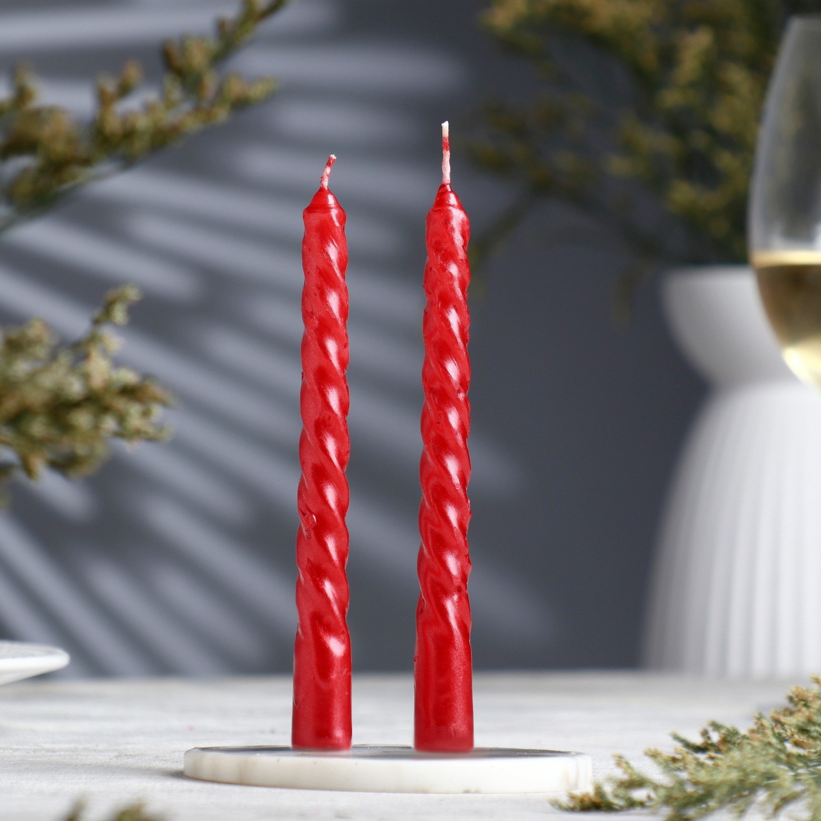 Набор свечей витых, 1.5 15 см, 2 шт., рубиновый металлик