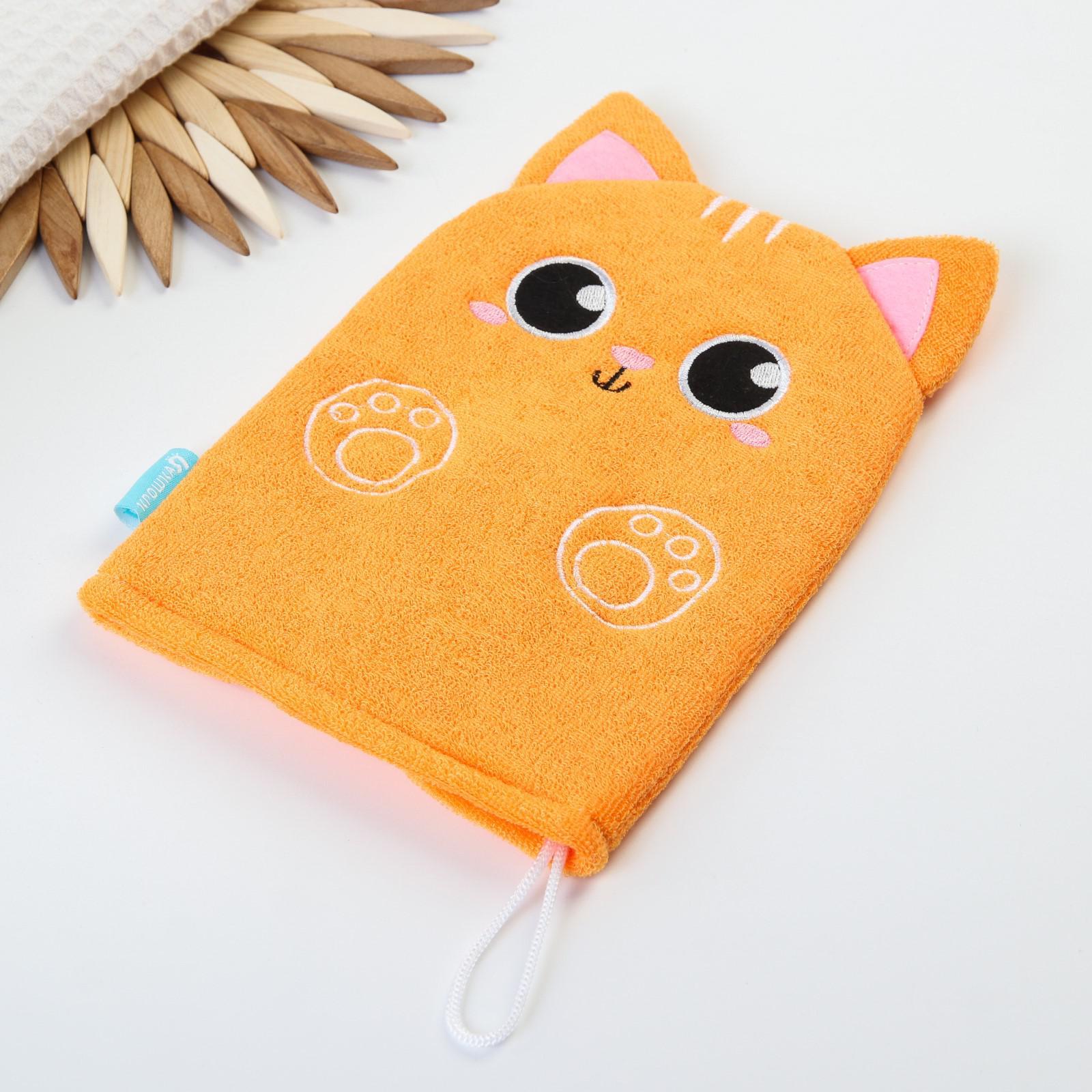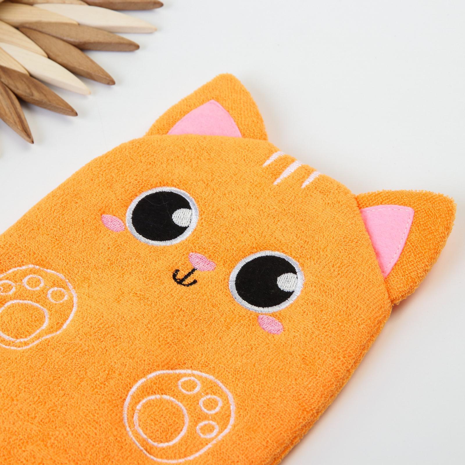 Мочалка детская для купания «котик», варежка, из махры