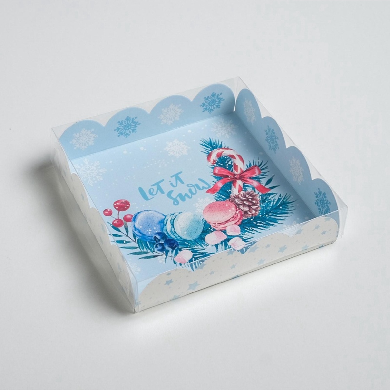 Коробка для кондитерских изделий новогодняя с пластиковой крышкой «морозное утро», 13 х 13 х 3 см. Вид упаковки:Для печенья|Вид упаковки:Универсальная|Цвет:Белый|Цвет:Бирюзовый|Форма:Квадратная|Плотность, г/м :280|Длина, см:13|Ширина, см:13|Высота, см:3|Допустимый вес вложения, г:200|Тематика:Зима|Тематика:Новогодняя|Символ года:Нет|Тематика праздника:Новый год|Материал:Картон|Материал:Пластик|Вид:Кондитерские коробки|Вид еды:Для печенья|Страна:Китай  развернуть описание ▼
