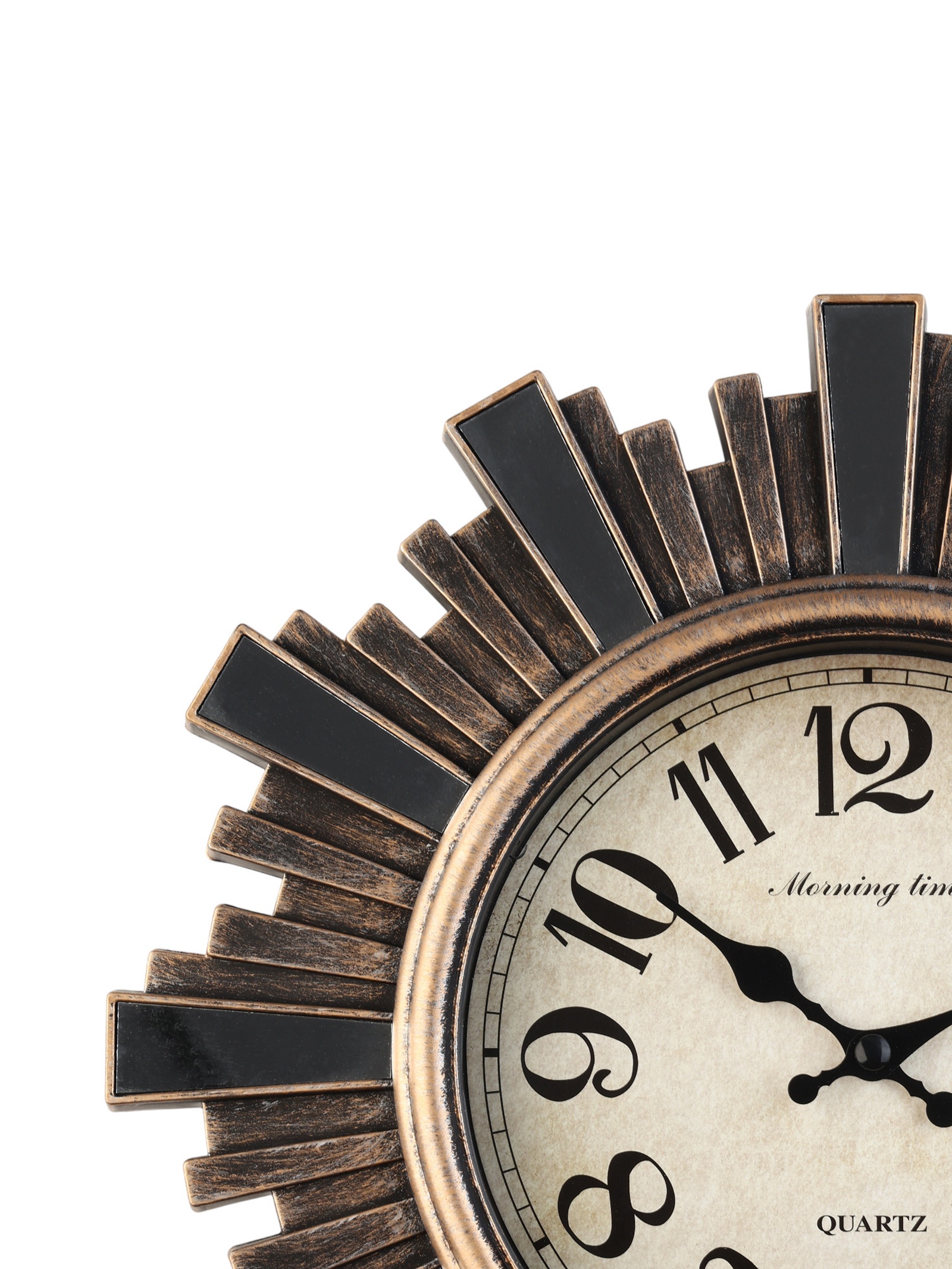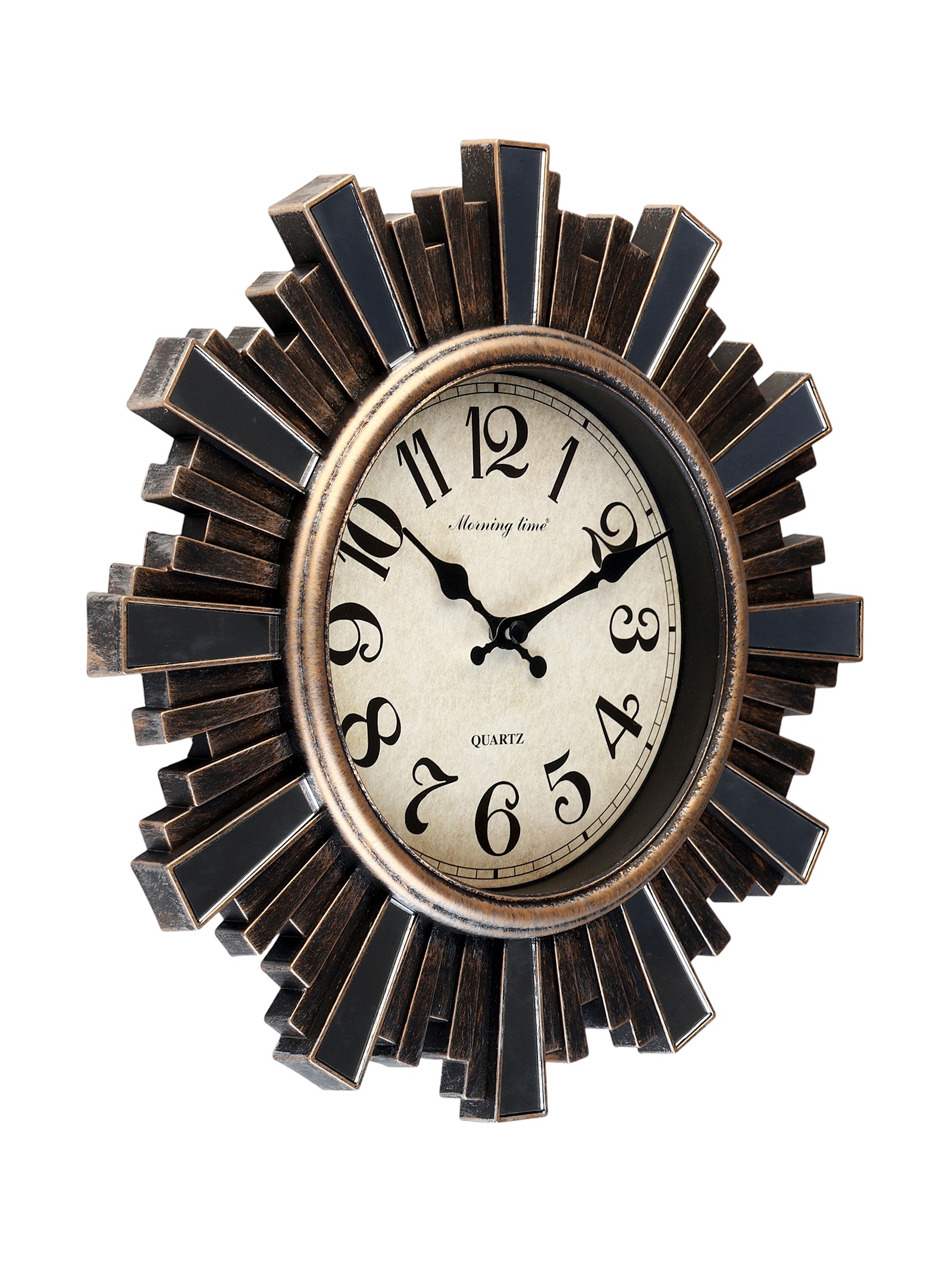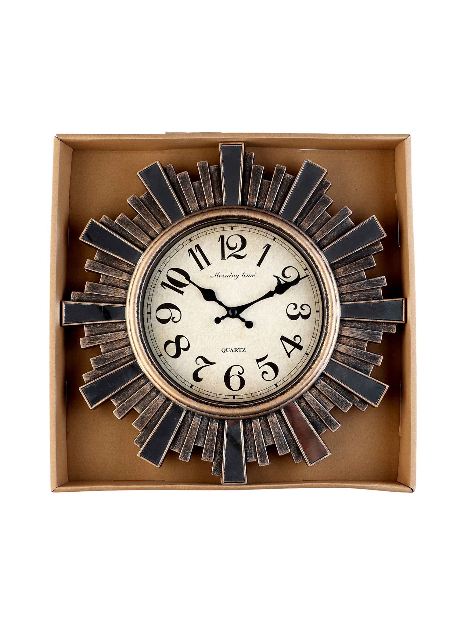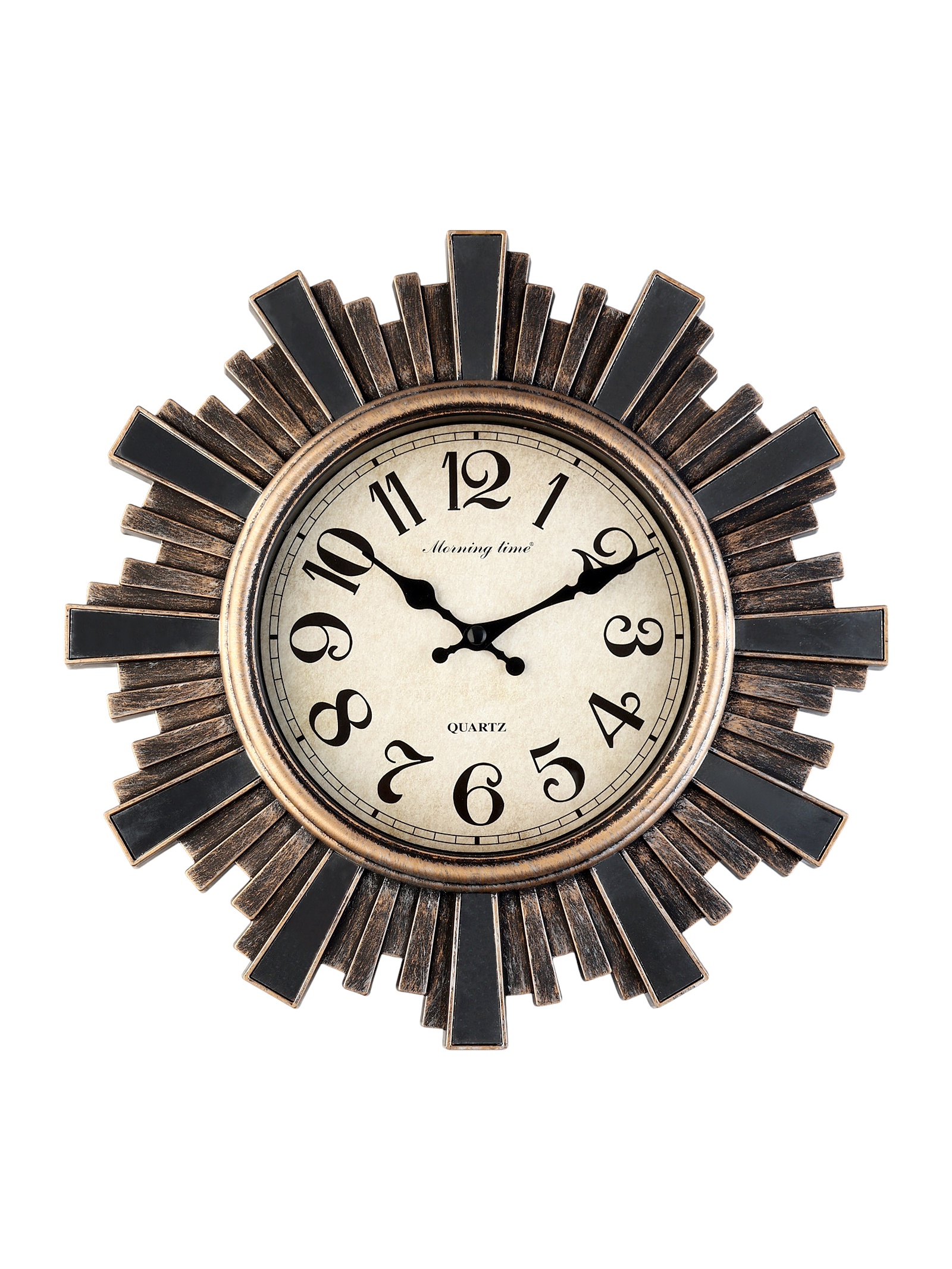 Часы настенные, интерьерные, лучики солнца, d-30 см. Особенности Модель можно разместить в гостиной, спальне или офисе.Корпус часов выполнен из пластика.Тип питания:От батареек|Форма:Круглая|Ширина, см:30|Высота, см:30|Тематика:Интерьер|Тип индикации:Арабские цифры|Тип механизма:Кварцевый|Цвет циферблата:Бежевый|Материал:Стекло|Материал:Пластик|Работает от сети:Нет|Типоразмер батареек:AA (LR6)|Ход стрелок:Дискретный|Цвет корпуса:Бронзовый|Бесшумные:Нет|Страна:Китай  развернуть описание ▼