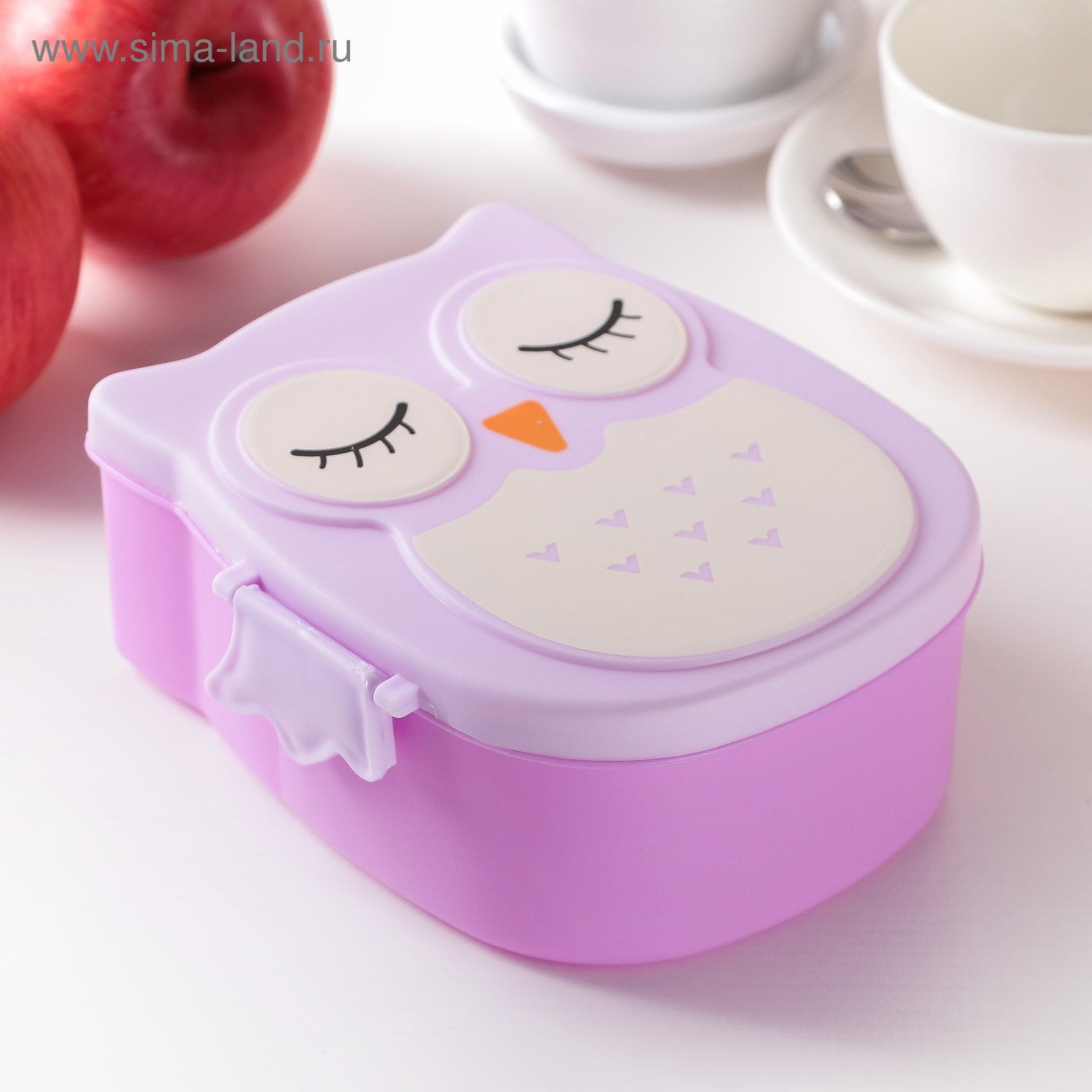Ланч-бокс пластиковый с ложкой«совушка», 2 отделения: 300 мл, 450 мл, цвет микс