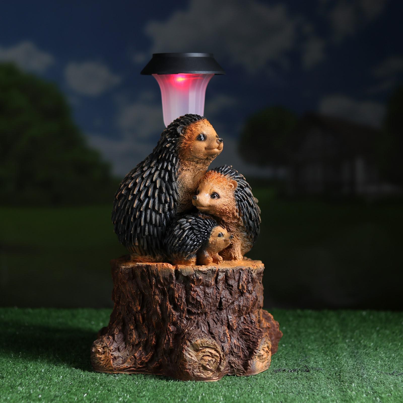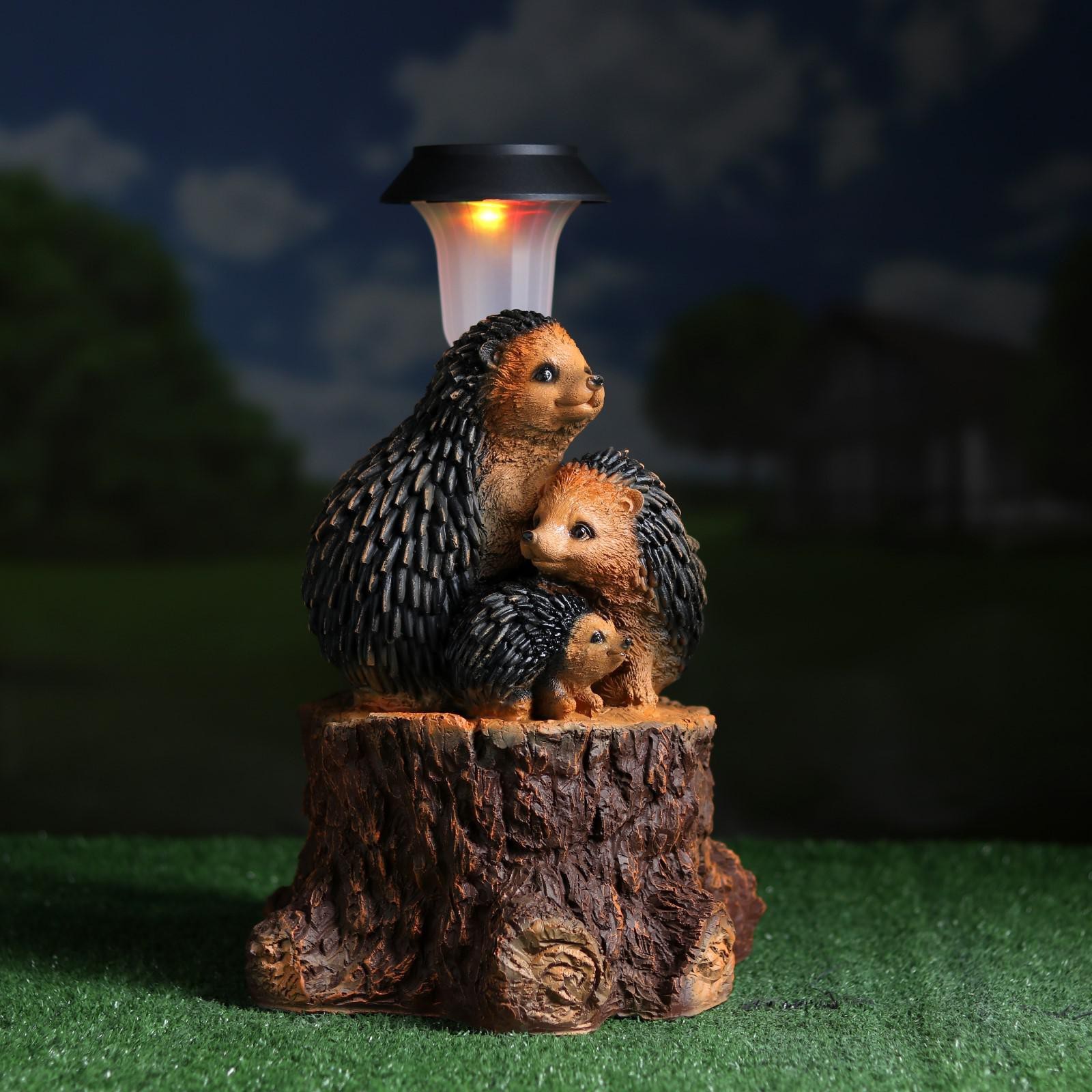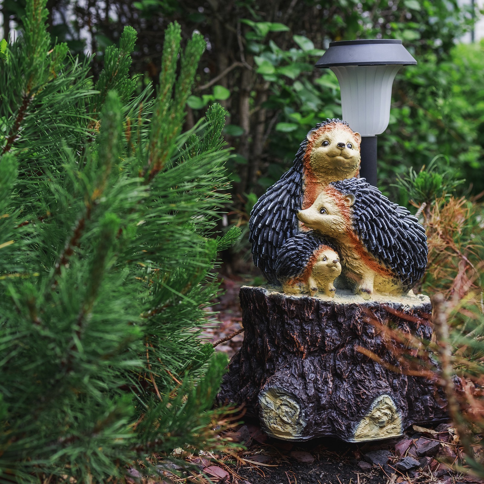 Садовая фигура - фонарь из полистоуна «три ежа на пне», 34 28 26 см