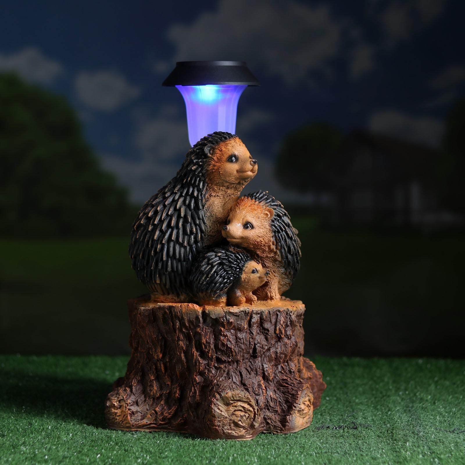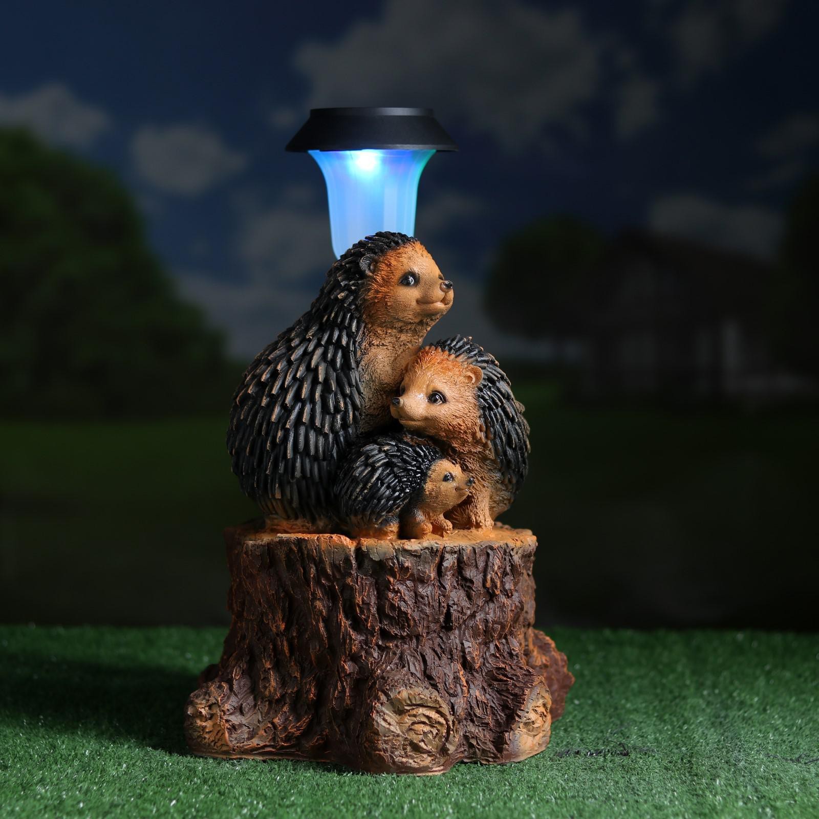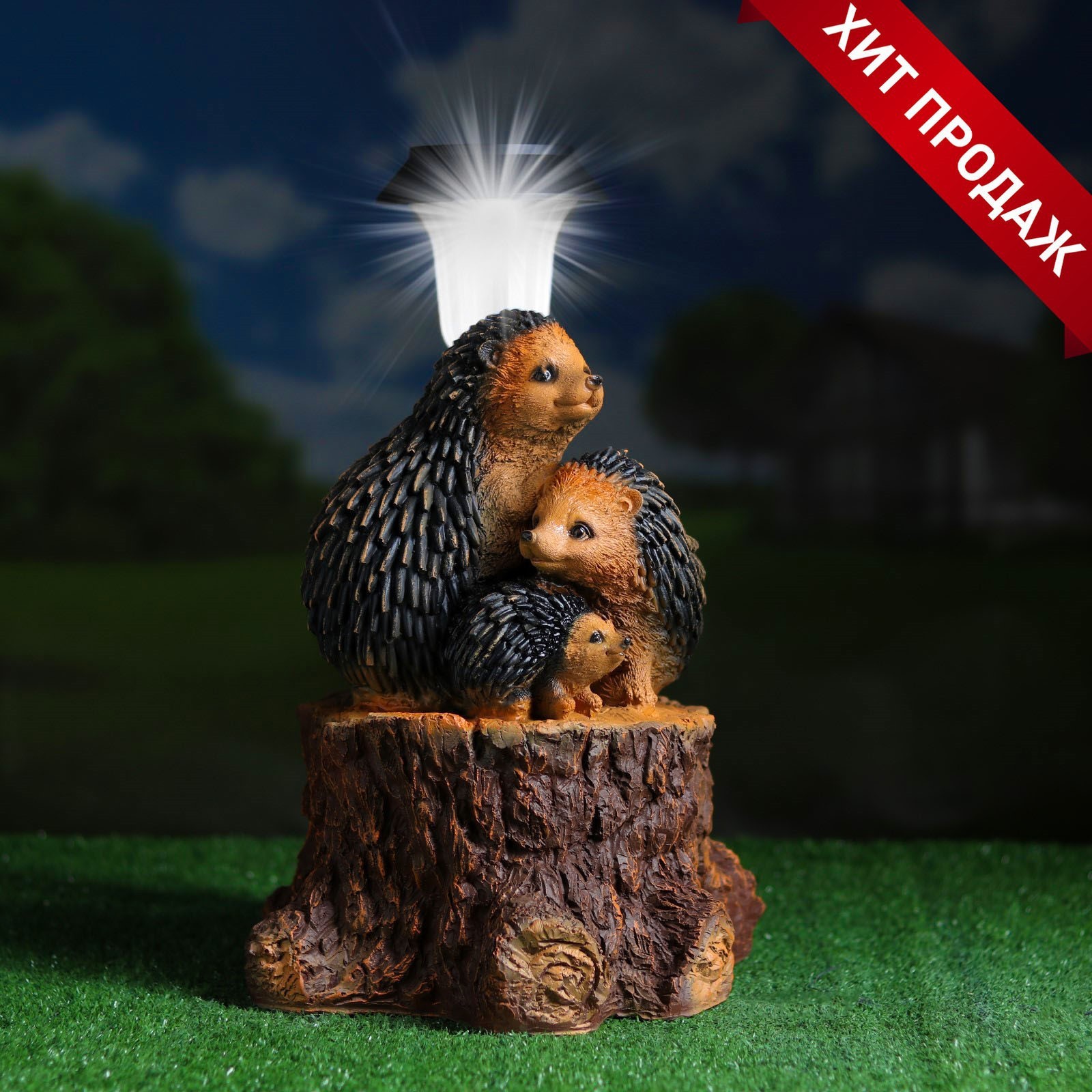 Садовая фигура - фонарь из полистоуна «три ежа на пне», 34 28 26 см