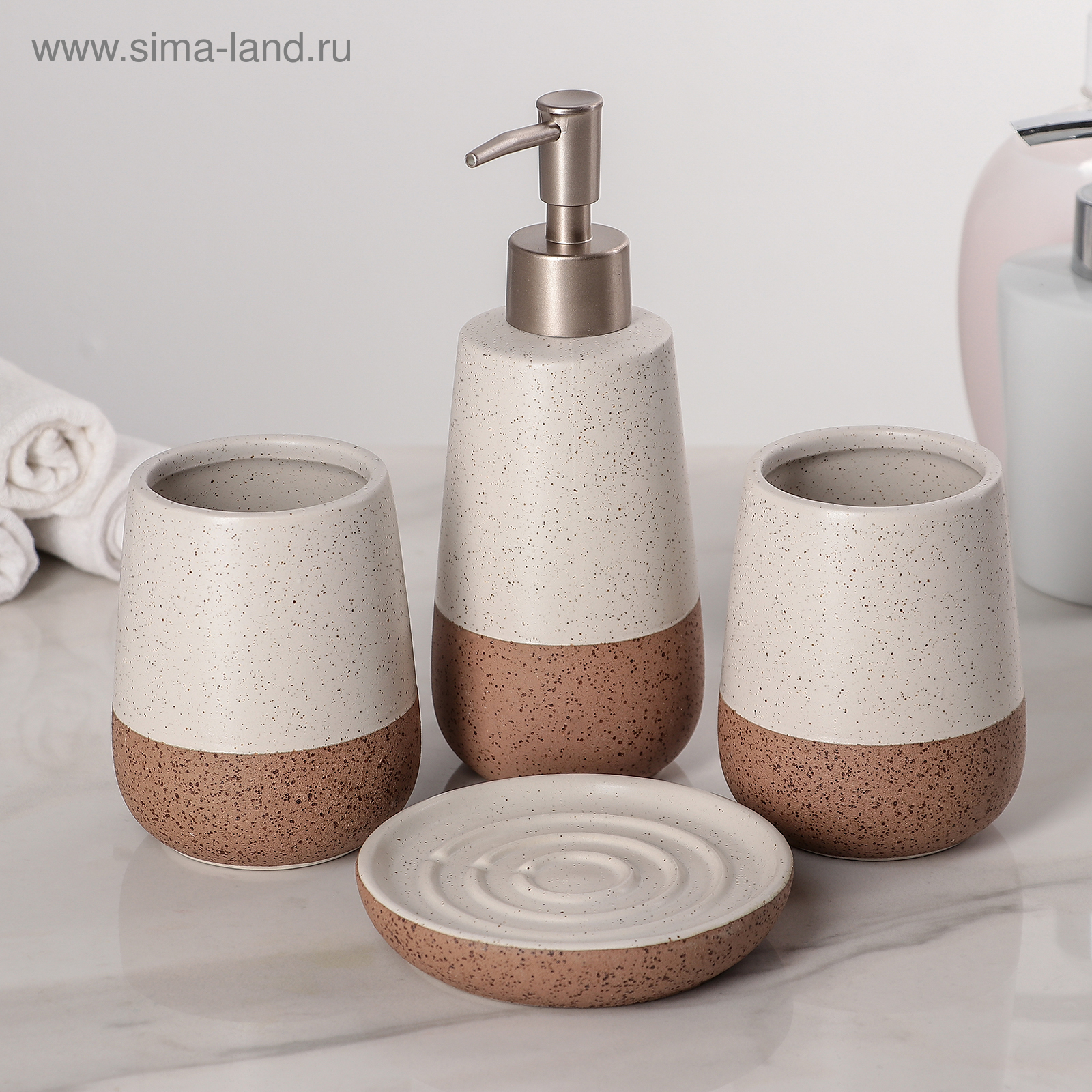 Набор аксессуаров для ванной комнаты «минимал», 4 предмета (дозатор, мыльница, 2 стакана), цвет бежевый