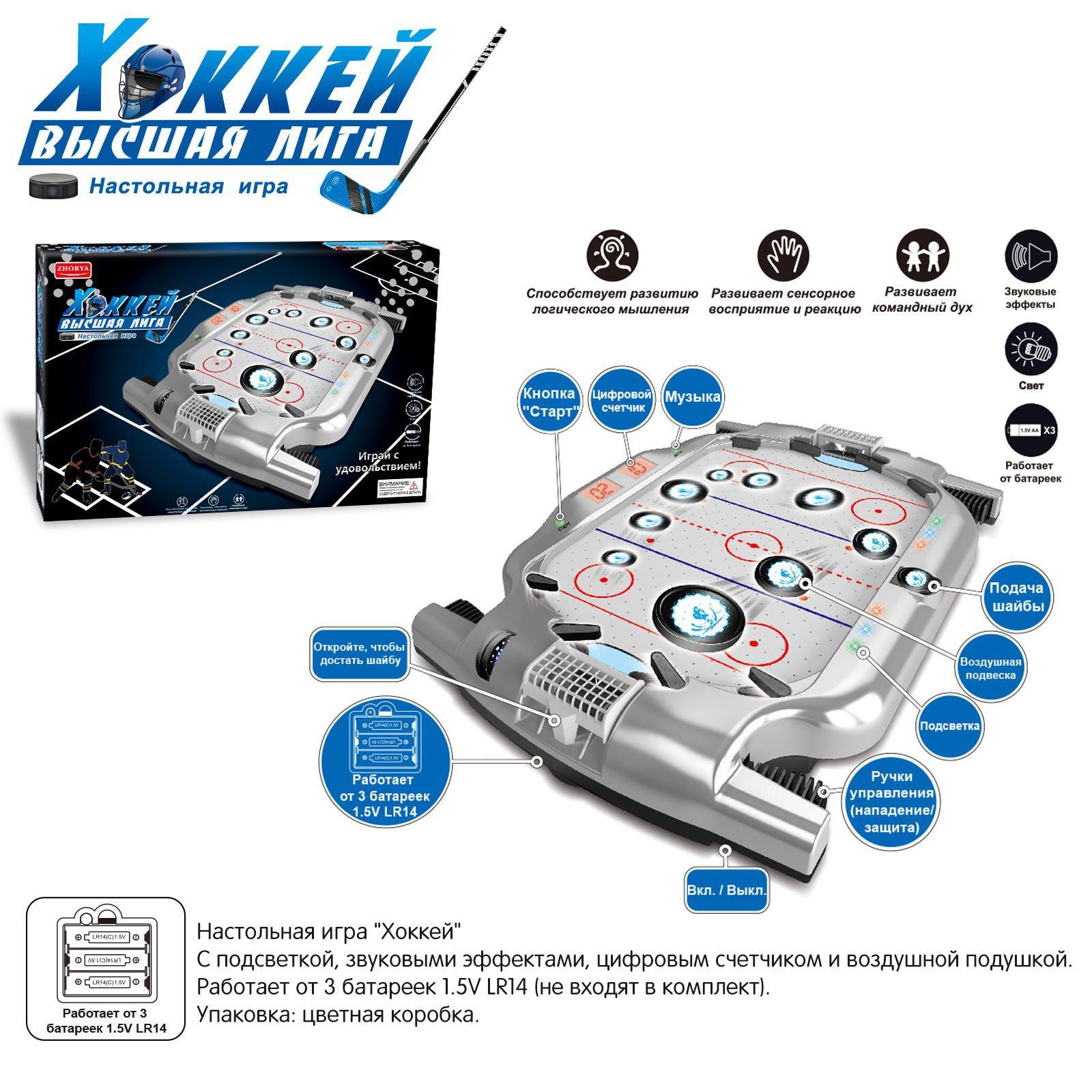 Аэрохоккей «высшая лига», световые и звуковые эффекты, работает от батареек, 2 игрока