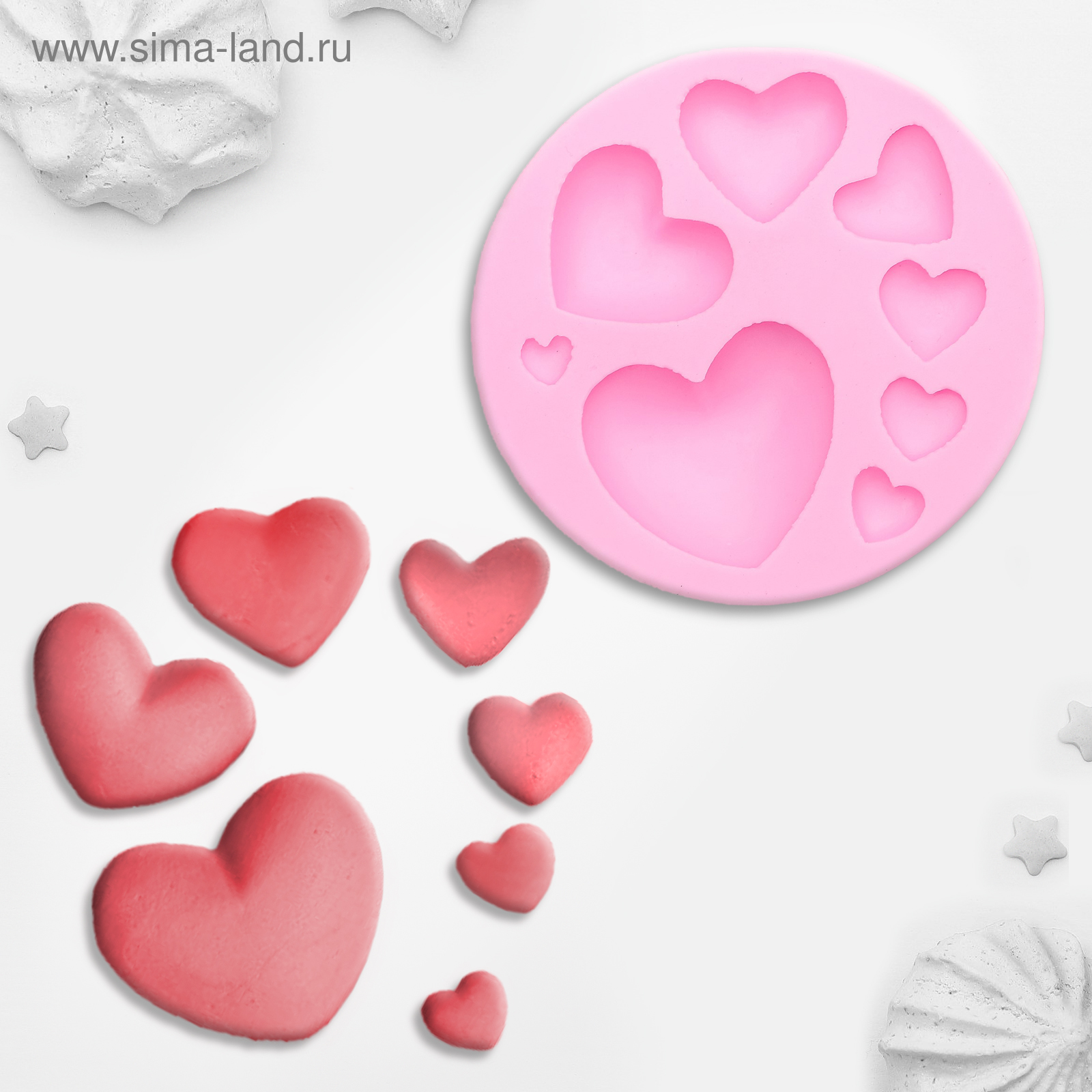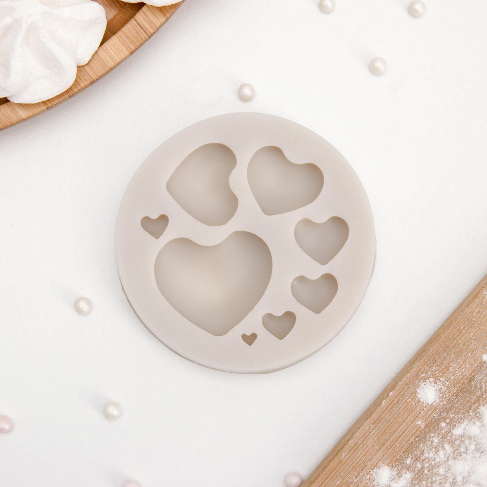Силиконовый молд доляна «сердца», D=7,5 см, цвет микс