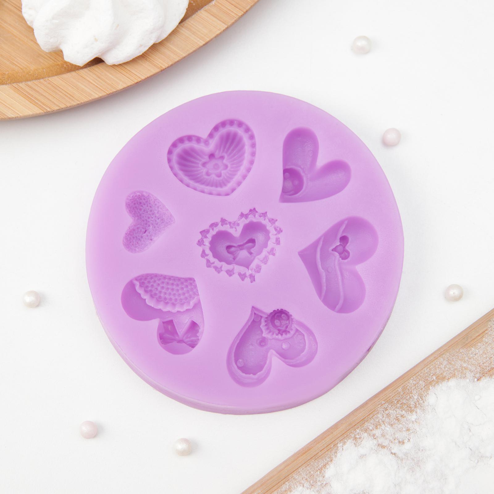 Молд «сердца ажурные», силикон, 9,5x9,5 см, цвет микс